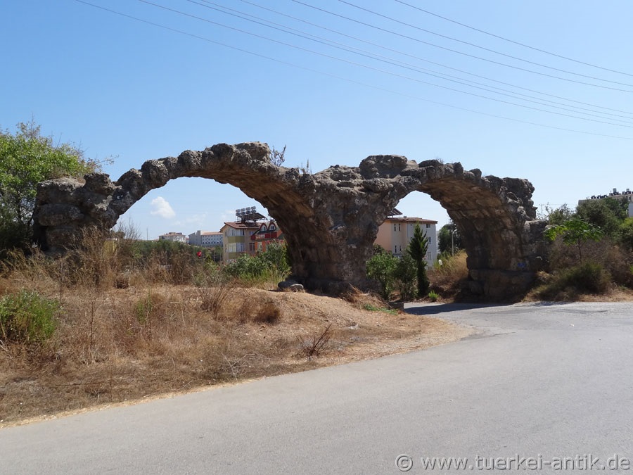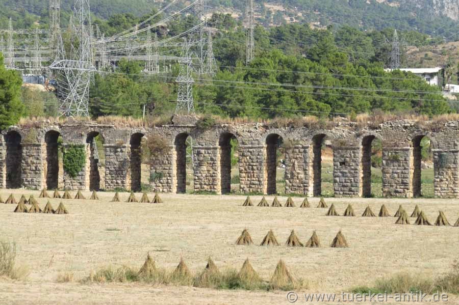 Das Aquädukt, das Side mit Wasser aus dem Taurus versorgte, war eine über 25 km lange Wasserleitung die vor über 2000 Jahren errichtet wurde. Im Bereich der heutigen Oymapinar-Staumauer mussten alten Quellen zurfolge, dafür Sklaven Kanäle durch den Fels schlagen. Über derartige Kanäle und Aquädukte wurde das Wasser bis zum Nymphaeum vor dem Stadttor in Side geleitet und von dort über weitere Aquädukte an die Verbrauchsstellen in der Stadt.