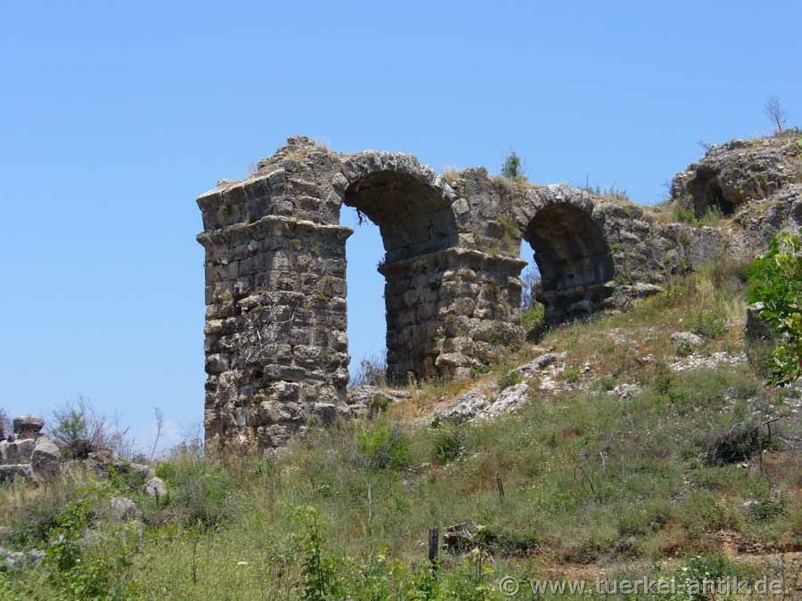 Zur Zeit der Araberüberfälle im 7. Jh. n. Chr. wanderten viele Bewohner nach Antalya ab. Fortan wurde es still um die einst so prächtige Stadt. Im 11. Jahrhundert machte die Stadt noch einmal als Piratennest von sich reden, jedoch legten sich bald Sanddünen über die Ruinen.