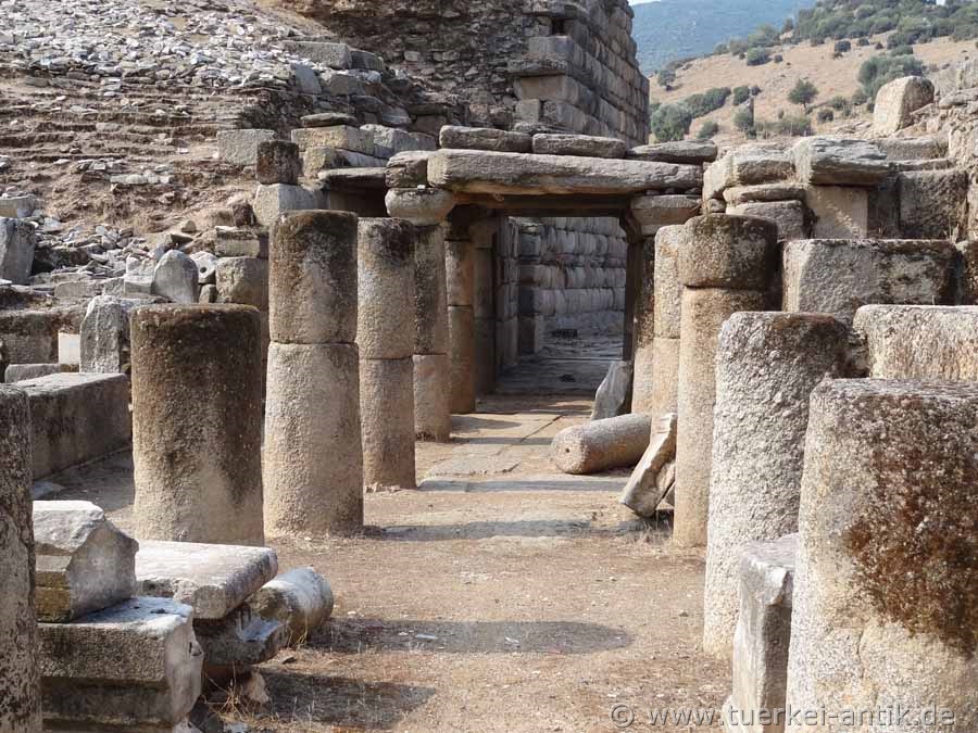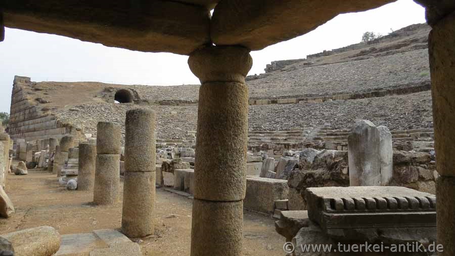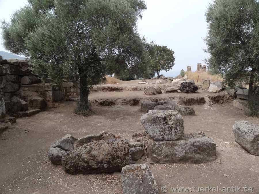 Die antike Stadt Alabanda liegt westlich von Çine, in der Nähe des heutigen Doğanyurt. In Çine ist die Straße nach Alabanda an der Nationalstraße D 550 braun ausgeschildert. Von hier sind es noch 7,5 km bis zu den Ruinen der antiken Stadt. |