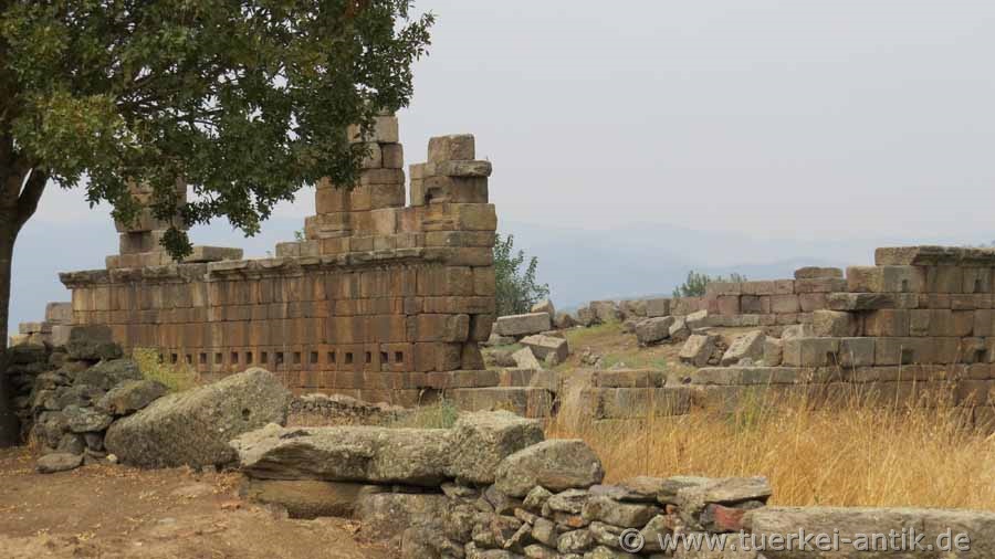 Viel ist von der einst stolzen Stadt nicht erhalten. Die Ruinen der Stadt umfassen unter anderem ein Theater, einen Tempel des Apollon Isotemos aus dem 2. Jh. v. Chr., ein Bouleuterion (22 x 35 m) und eine nur noch im Ansatz erkennbare Agora (112 x 72 m). Weiter sind einige Türme der Stadtmauer und zahlreiche Gräber in einer großen Nekropole erhalten. Bei Ausgrabungen kamen einige wenige Inschriften zutage. |