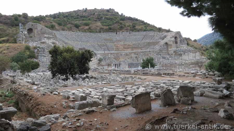 Auch in Zusammenhang mit der Entwicklung des Christentums ist Ephesos von Bedeutung. Im Neuen Testament ist der Epheserbrief erwähnt, den der Apostel Paulus an die Christen der Stadt schrieb. Der Legende nach soll sich Maria nach der Himmelfahrt Jesu mit dem Apostel Johannes in Ephesos niedergelassen haben und dort viele Menschen in Heilkunde unterrichtet haben. Das Sterbehaus der Mutter Maria, auf einen Hügel oberhalb der Stadt, ist heute ein Wallfahrtsort. Dem Brunnenwasser dort wird heilende Wirkung nachgesagt. |