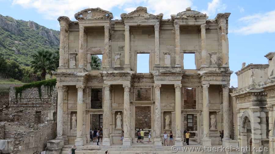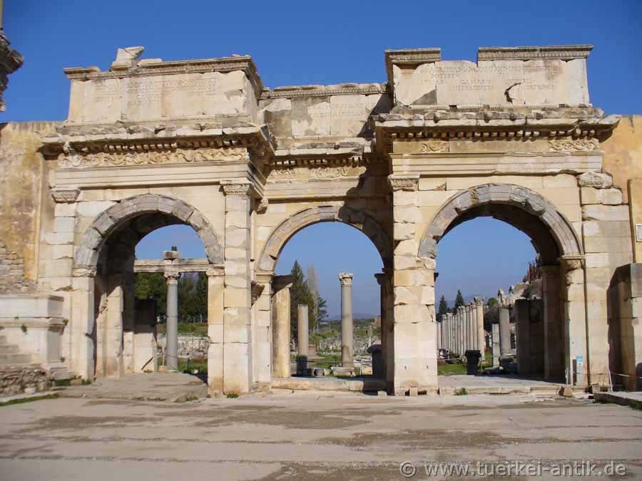 Ephesos war eine der bedeutendsten und größten Städte des Römischen Reiches. Zahlreiche öffentliche Bauten wurden sowohl von der Stadt wie auch von reichen Bürgern finanziert. Im Rahmen des Kaiserkultes entstanden Tempel für die Kaiser Vespasian und Hadrian. Ephesos war Sitz des Statthalters der Provinz Asia. |