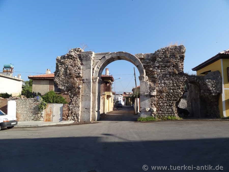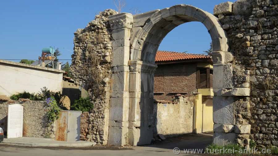 Das Doppelaxt-Tor heißt so nach der Doppelaxt, die in den Schlußstein des Torbogens gemeißelt wurde. Über die einstige Funktion des Tores streiten die Archäologen bis zum heutigen Tag. War es Bestandteil der Stadtmauer, war es ein anlässlich eines Kaiserbesuches errichtetes Triumphtor oder wurde es aus einem gänzlich anderen Grund erbaut?
