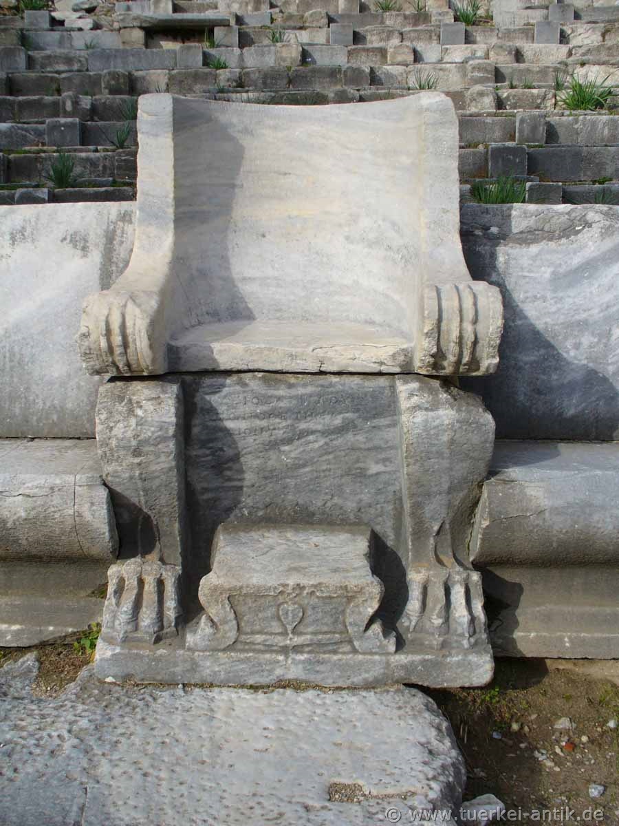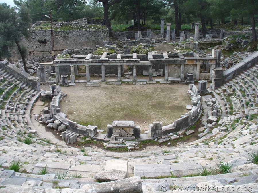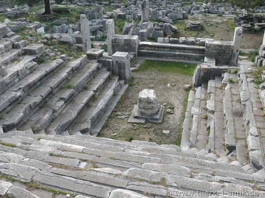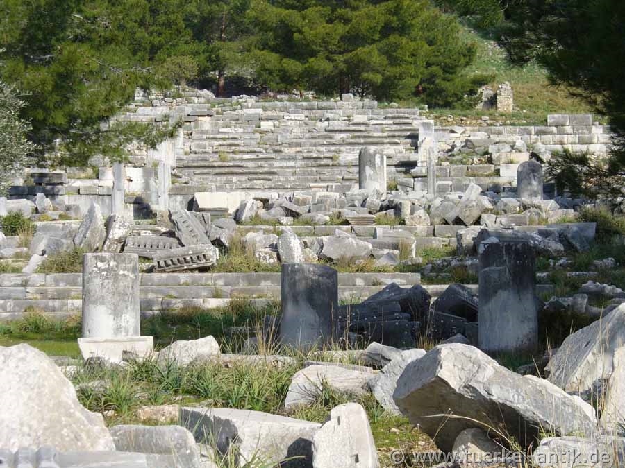 Von den über zwanzig zum Teil sehr gut erhaltenen Theatern Westkleinasiens hat allein dieses die hellenistische Form bewahrt. Alle anderen wurden in römischer Zeit umgebaut. Eine Besonderheit sind die fünf Marmorsessel rings um die Orchestra, die für Würdenträger und Ehrengäste bestimmt waren.