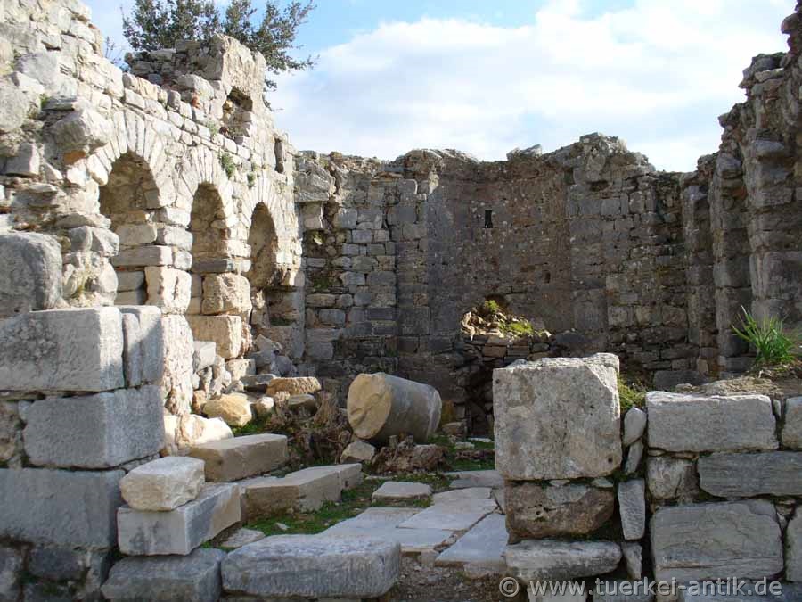 Östlich der Agora liegt das Heiligtum des Asklepios, dessen Eingang nicht an der Agora sondern der davon abgewandten Ostseite des Heiligtums lag.