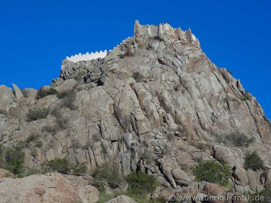 Aus der antiken Geschichte der Stadt ist kaum etwas bekannt. Die Burg von Afyonkarahisar (türkisch: Afyonkarahisar Kalesi) ist eine um 1350 vor Chr. von den Hethitern auf einem 226 m hohen Felsmassiv erbaute Befestigungsanlage. |