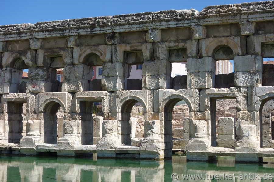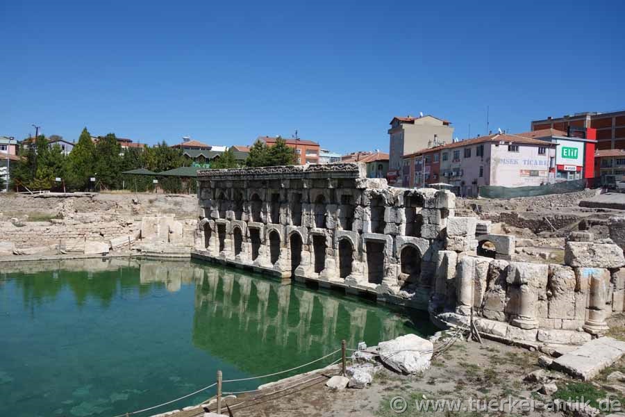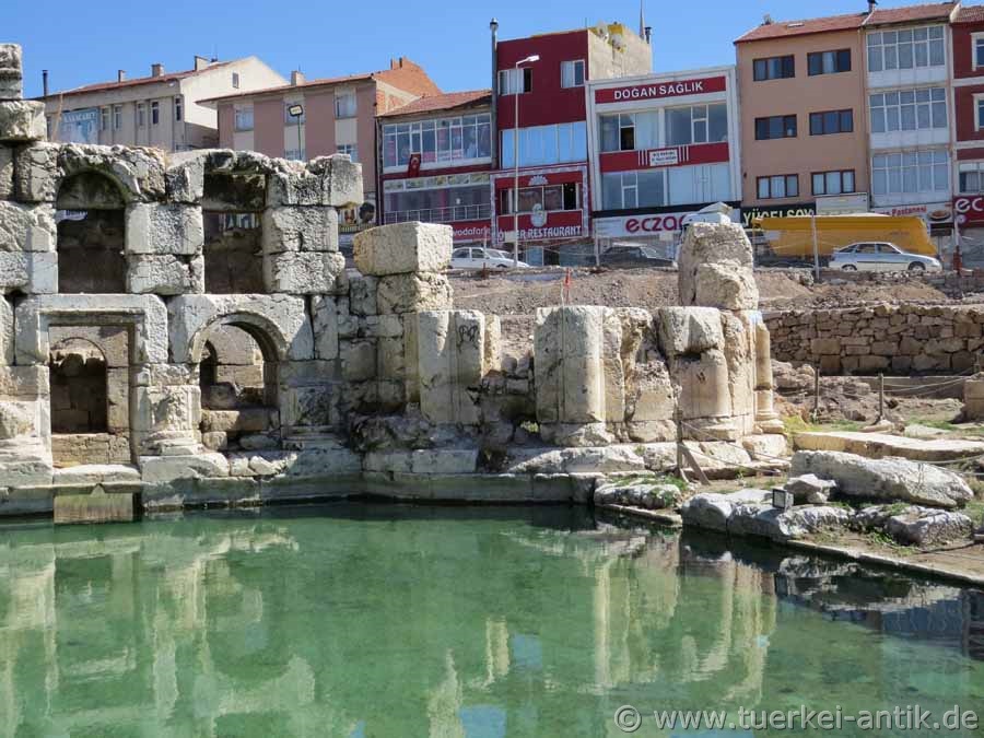 Das heutige Sarikaya war in römischer Zeit unter dem Namen Aqua Sarvenae bekannt. Als wichtiges Kurzentrum genoss die antike Stadt einen herausragenden Ruf. Die römische Stadt wurde durch ein Erdbeben zerstört, nur die Ruinen Bäder sind geblieben. Noch heute werden die Thermalquellen im Südosten der Stadt genutzt. Sie gehören zu der Gruppe der fluoridhaltigen Wässer mit 28 l / Sek. Flussrate. Die Temperatur des heißen Quellwassers beträgt 48 ° C und wird bei 38–40 ° C verwendet. |