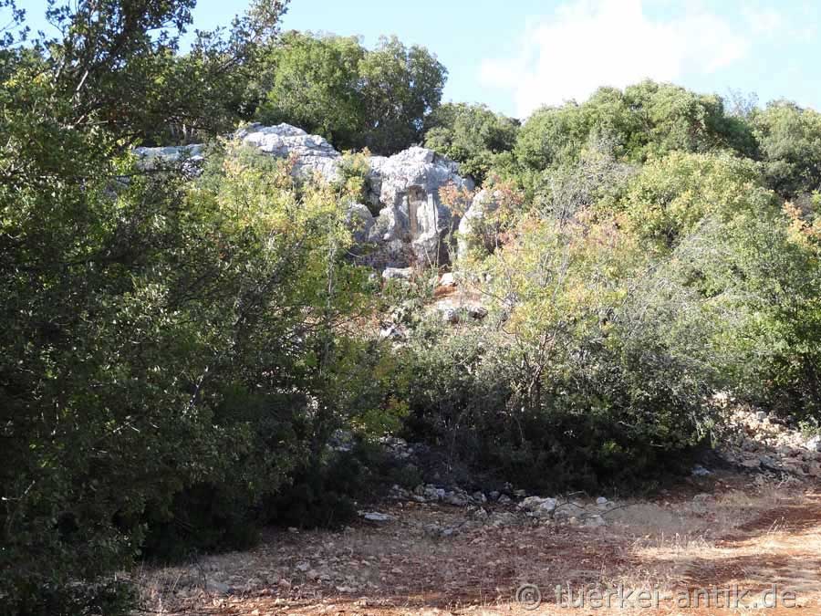 Das Dorf Sömek liegt etwa 15 Kilometer von der Mittelmeerküste entfernt im bergigen Hinterland von Kızkalesi. Vermutlich im 2. Jahrhundert wurde im Norden des Dorfes zu Ehren der Göttin Athena ein Relief in einen Felsblock gemeißelt. |