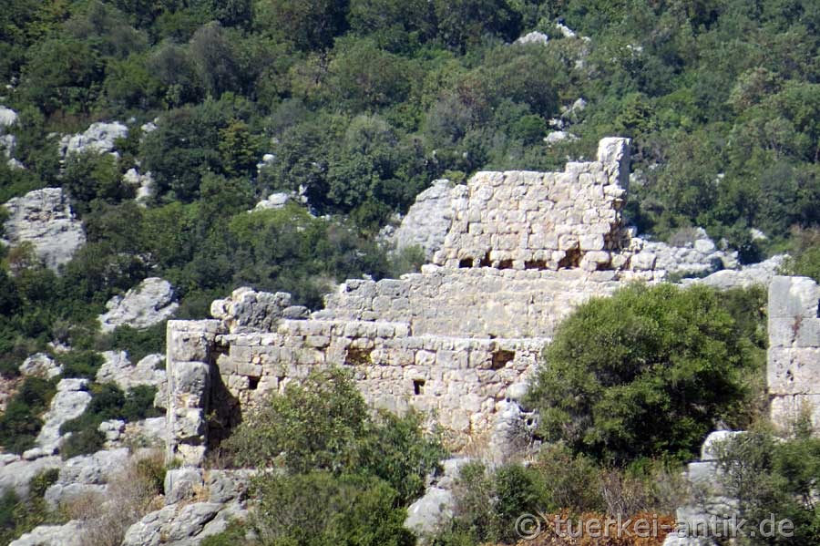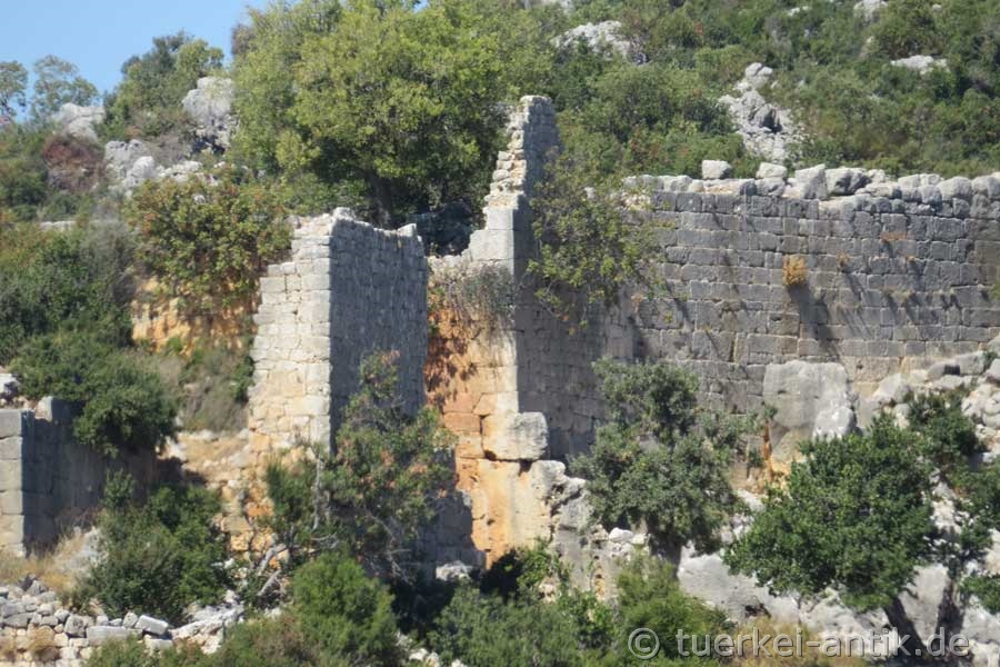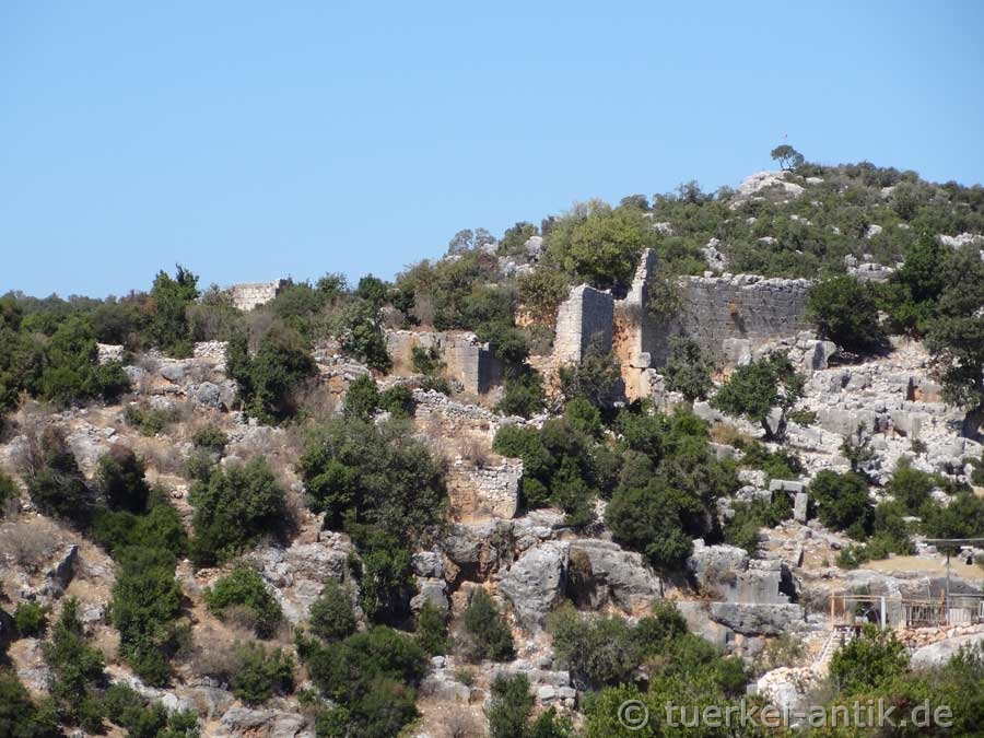 Die Ruinen der etwa 100 Häuser in der etwa 200 × 400 Meter großen Siedlung liegen auf einem steilen Hang zum Tal Yenibahçe Deresi. Auf der gegenüberliegenden Seite der Schlucht liegen die Ruinen der ebenfalls römisch-byzantinischen Siedlung Barakçıkale. |