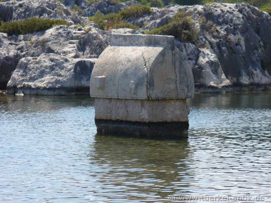 Auf den Resten der antiken lykischen Stadt Simena befindet sich heute das Dorf Kaleköy (türkisch für "Burgdorf" Der Ort ist auch heute noch nur zu Fuß oder mit dem Boot erreichbar. |