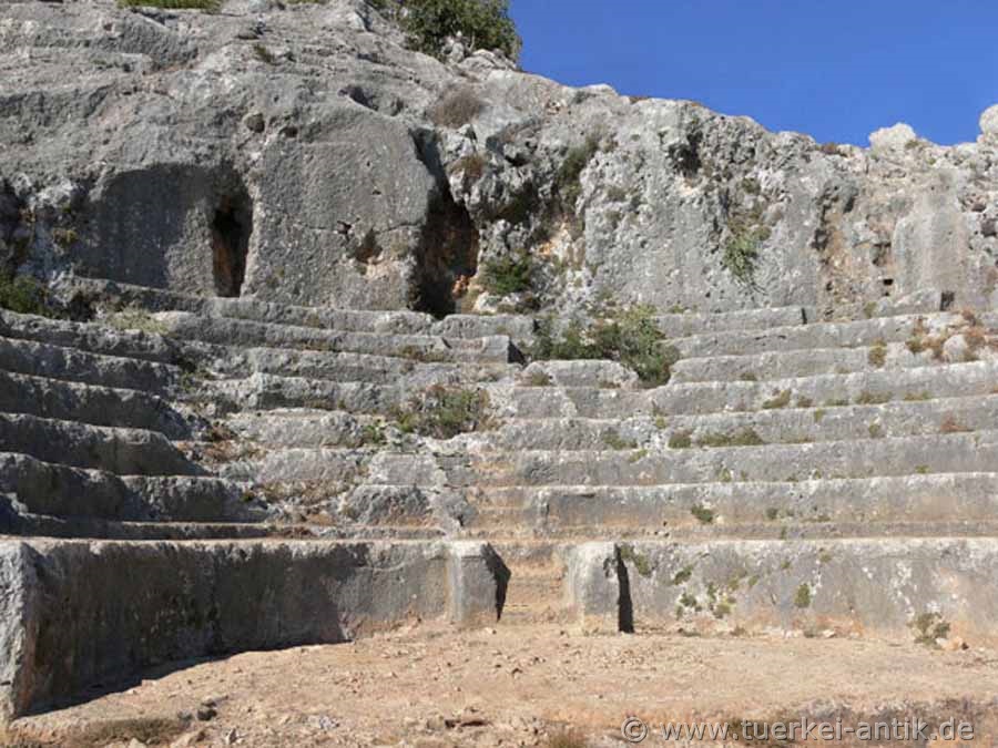 Weiter oberhalb ist ein kleines lykisches Theater in den Fels gehauen. Sieben Sitzreihen boten Platz für ca. 300 Personen. |