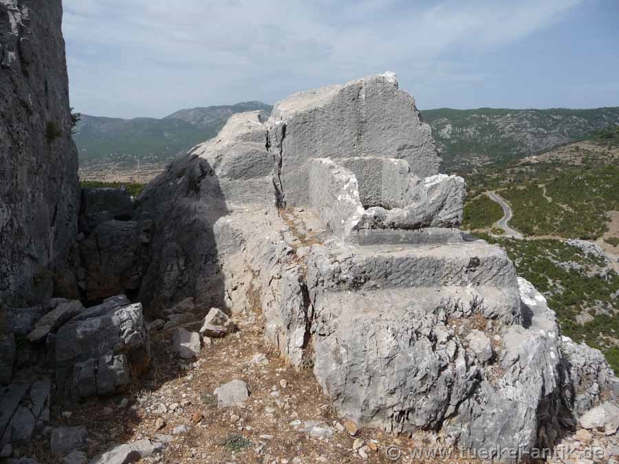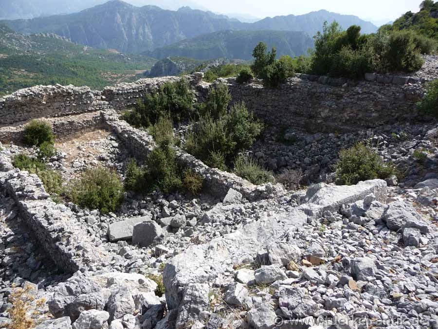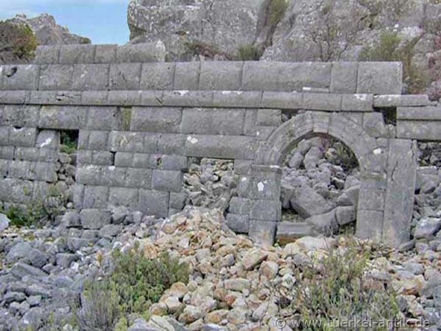 Milyos oder Melli ist eine antike Stadt in den Bergen, 47 km Luftlinie nördlich von Antalya, in der Nähe des heutigen Dorfes Kocaaliler. |