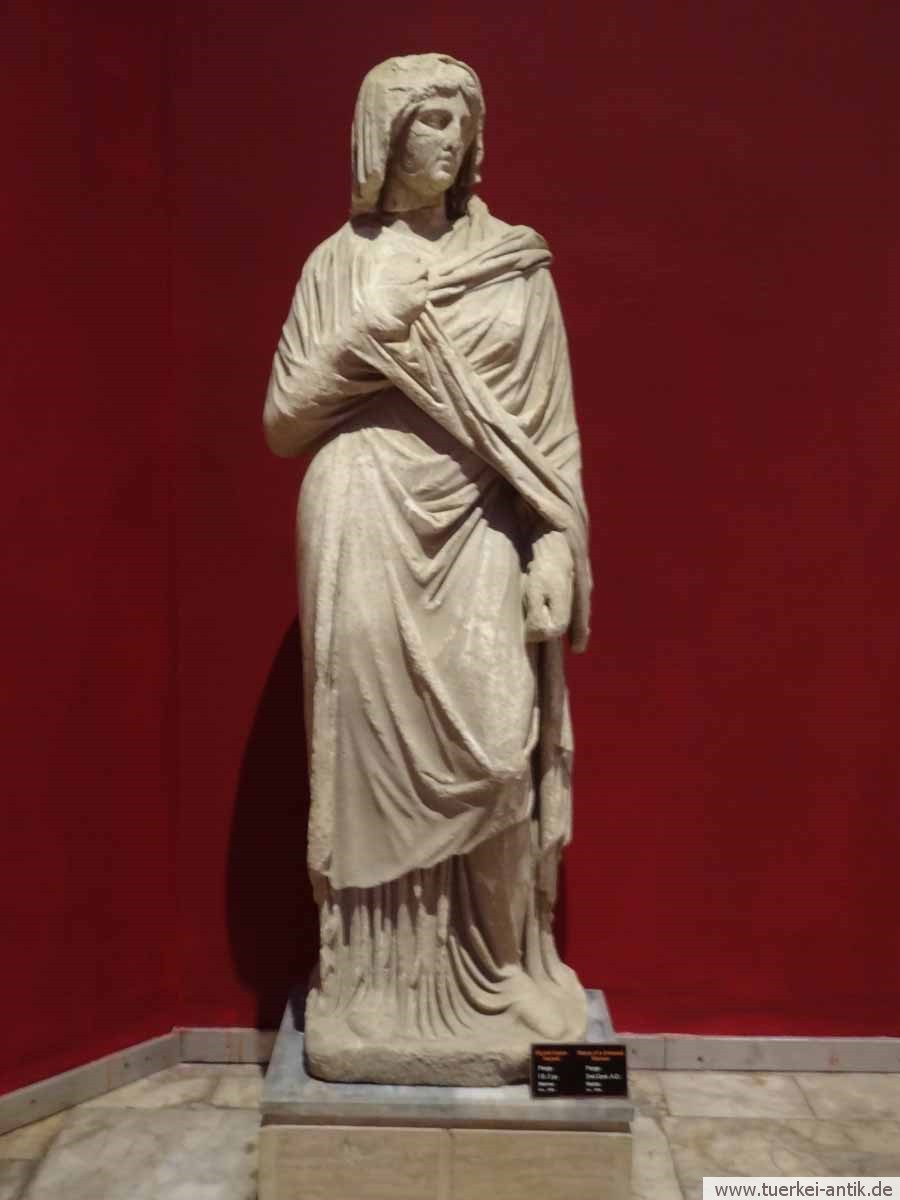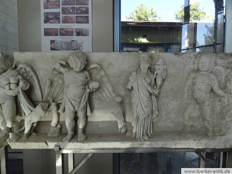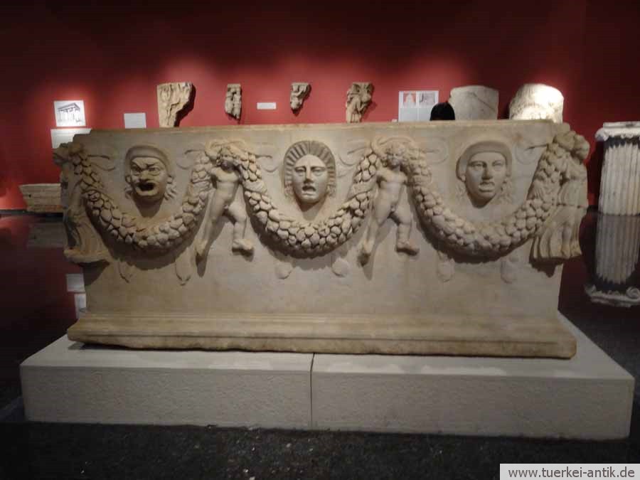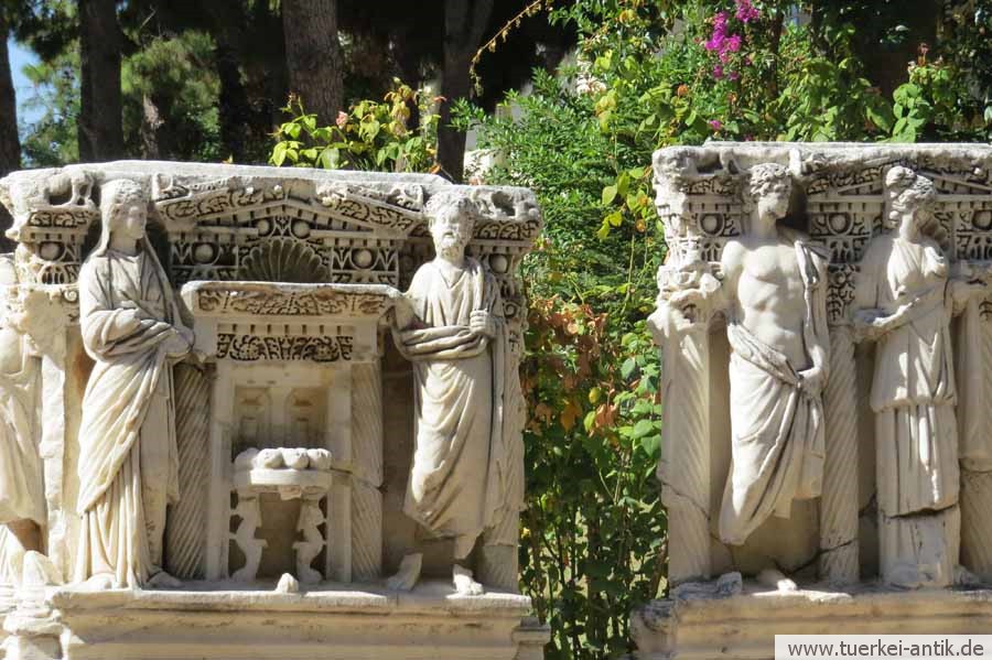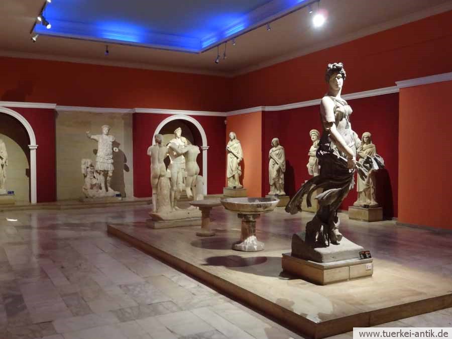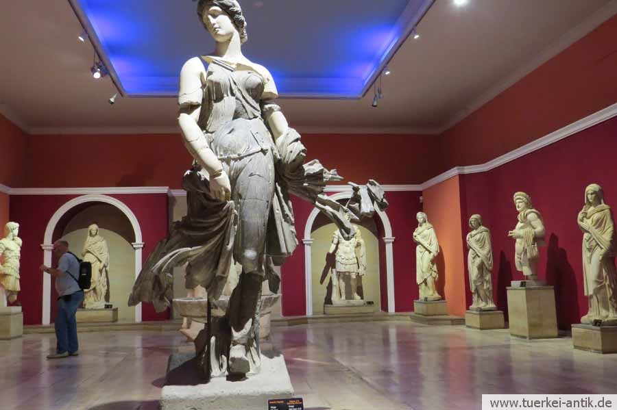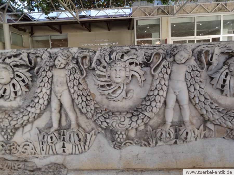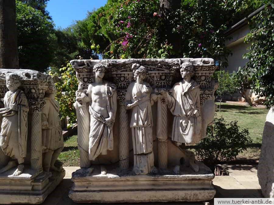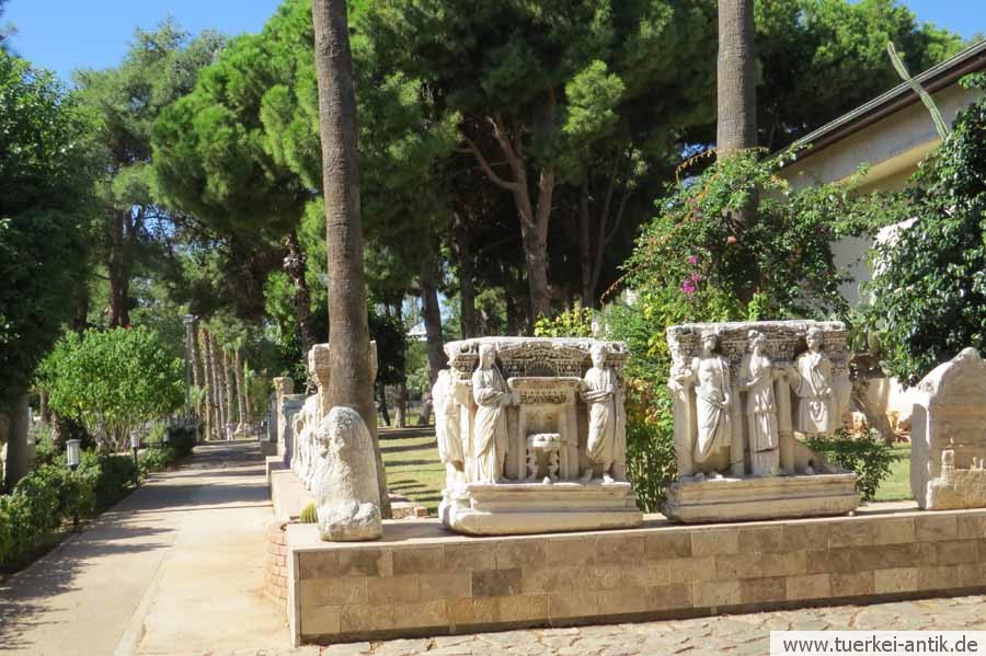 Das archäologische Museum in Antalya ist eines der größten und bedeutendsten Museen der Türkei. Es wurde 1988 mit dem Sonderpreis des Europäischen Rates ausgezeichnet. Auf einer Fläche von 7.000 m2 werden ca. 5.000 herausragende Ausstellungsstücke aus hellenistischer, römischer, byzantinischen, seldschukischer und osmanischer Zeit gezeigt. Es umfasst 13 Räume sowie einen großzügig angelegten Museumsgarten mit steinernen Zeugen aus der Geschichte Pamphyliens und Lykiens. Darüber hinaus sind weitere 25.000 bis 30.000 Artefakte eingelagert, die nicht angezeigt werden können. |