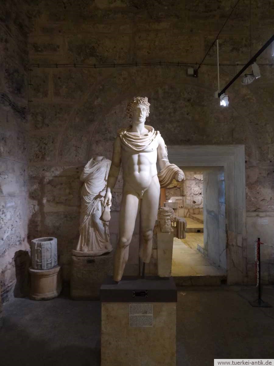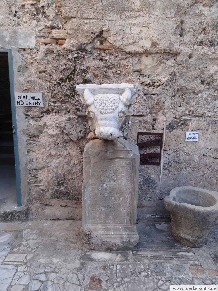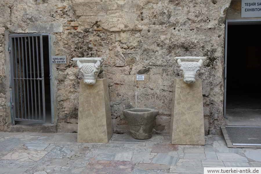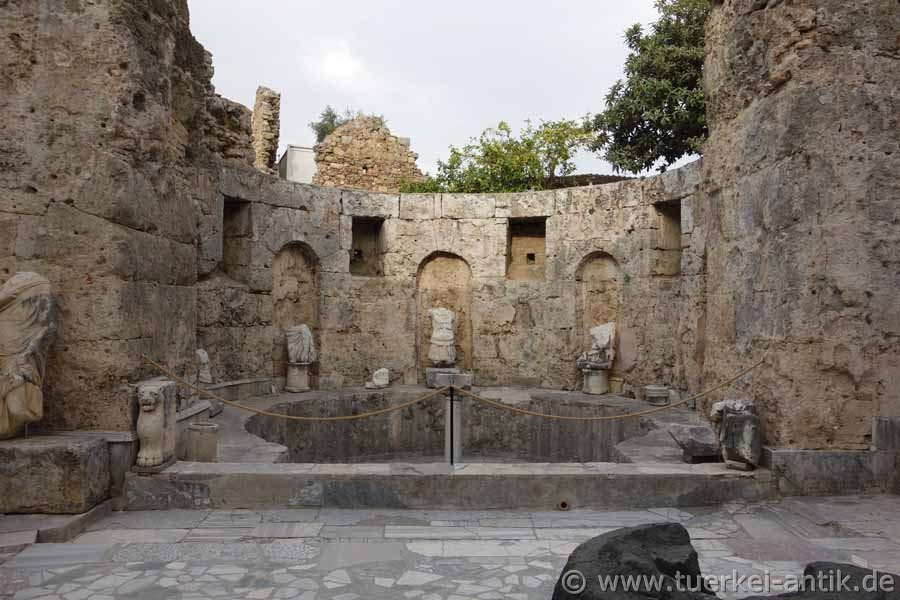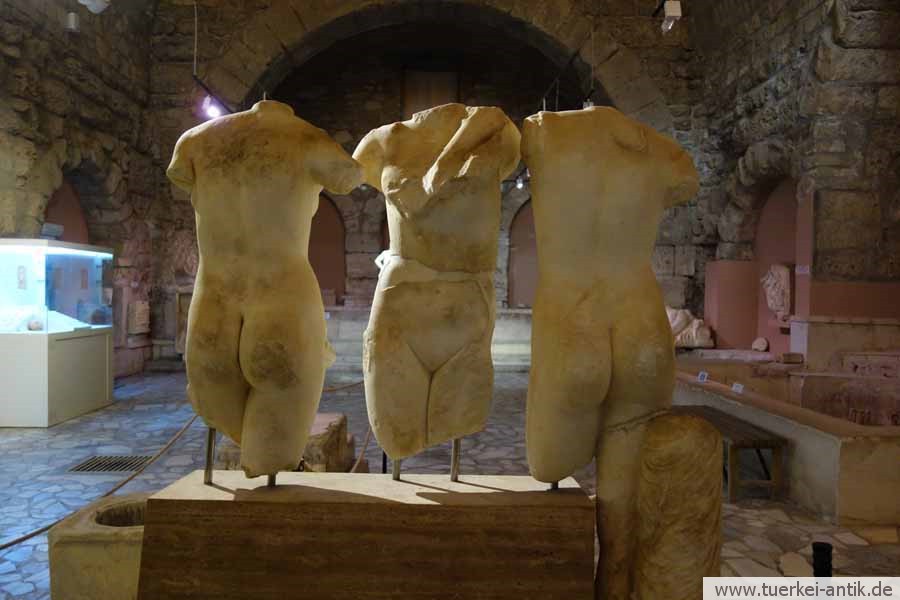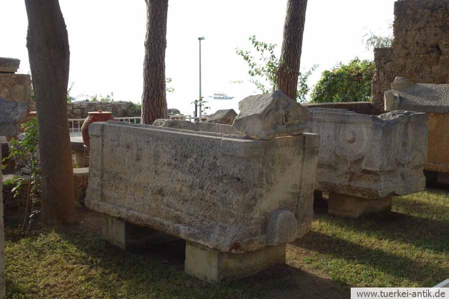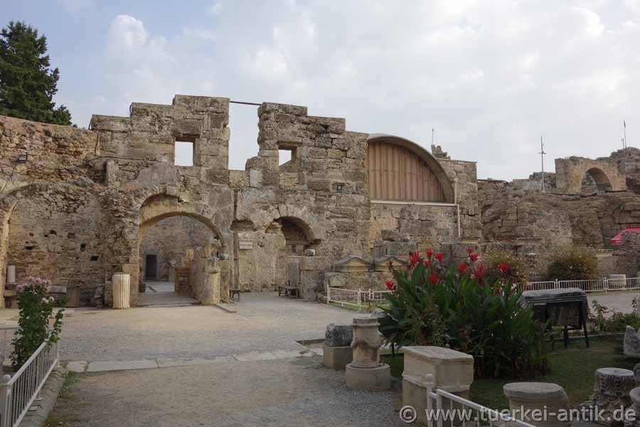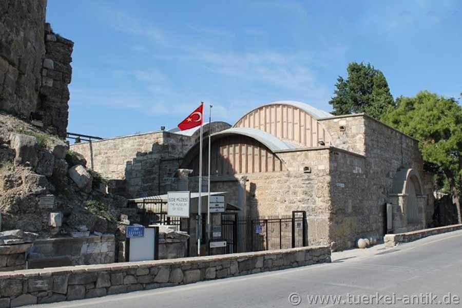 Zu Beginn der 1960er Jahre wurden die großen römischen Thermen gegenüber der Handelsagora vor dem Theater restauriert und in ein archäologisches Museum umgewandelt. Der aus dem 5. - 6 Jh. n. Chr. stammende Komplex besitzt eine Grundfläche von 55 x 40 Meter und war damit das größte der vier Bäder Sides. Die Einrichtung eines Museums wurde notwendig, nachdem die Anzahl der Artefakte, die bei den beginnenden Ausgrabungen in Side in den Jahren seit 1947 immer größer wurden. Mit dem Einsetzen des Tourismus in Side in den 1970er Jahren stieg auch das Interesse der In- und ausländischen Besucher an den archäologischen Funden.