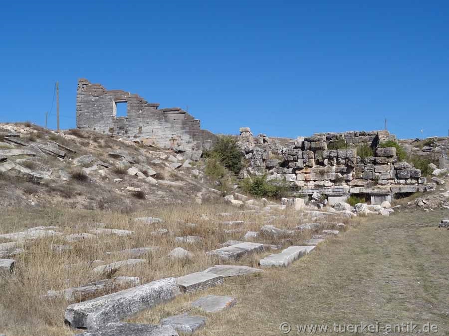 According to the founding legend, Aizanoi was founded by Arcadian settlers. The archaeological evidence of a settlement dates back to the 3rd millennium B.C., but a more extensive settlement was not established until the Hellenistic period. Around 200 B.C. the area in which Aizanoi lies came to the kingdom of Pergamon as Phrygia epiktetos ("acquired Phrygia"); at times it also belonged to Bithynia. The Pergaman kings settled mercenaries who probably came from Macedonia. Together with its entire empire, the city entered the Roman province of Asia after 133 BC. Aizanoi experienced a great boom in the early imperial period. In particular, numerous public buildings were erected, such as a temple of Artemis Hagiotate in the middle of the 1st century A.D., and before its end the sanctuary of Zeus, the main god of the city. It is largely preserved.
