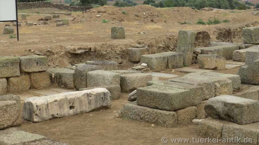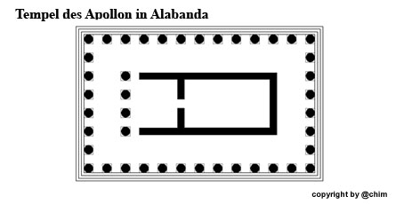 Der Tempel des Apollon Isotimos wurde von einem Menesthes erbaut. Er war ein Schüler des berühmten Architekten Hermogenes aus Alabanda (oder Priene), der den Artemistempel in Magnesia (ad Maeandrum), seinem Meisterstück, erbaute. Der Grundriss hat Ähnlichkeit mit dem des Tempels der Hekate in Lagina. |