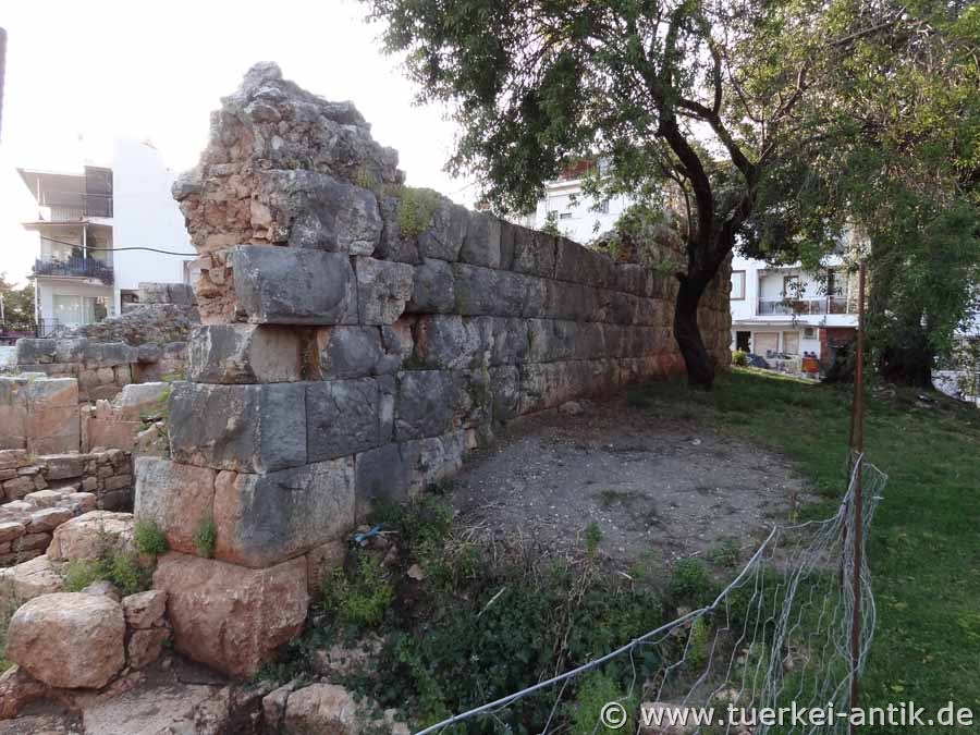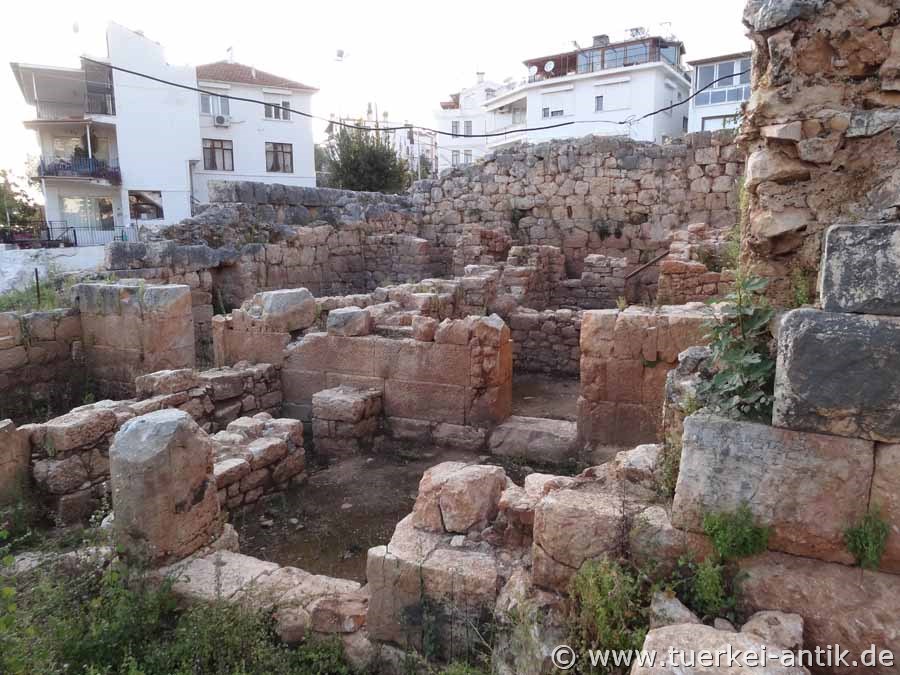 Jh. v. Chr. datiert. Er wurde im 1. Jh. v. Chr. vergrößert und mit einem Propylon versehen. (Das Temenos bezeichnet den umgrenzten Bezirk eines (ursprünglich griechischen) Heiligtums. Die Einfassung selbst, Peribolos genannt, wird gewöhnlich durch Mauern, oft übermannshoch, oder Säulenhallen, bisweilen durch Zäune gebildet. Der Zugang ins Heiligtum ist meist durch einen Torbau, ein Propylon, architektonisch gefasst.) |