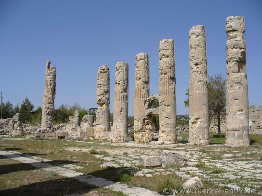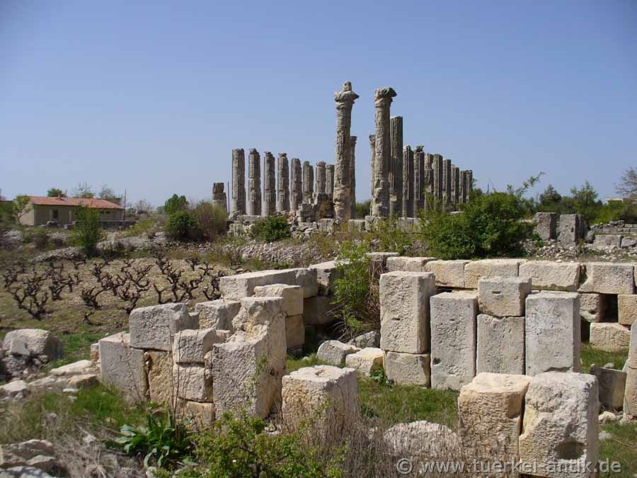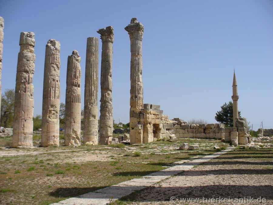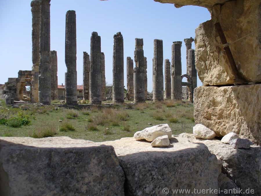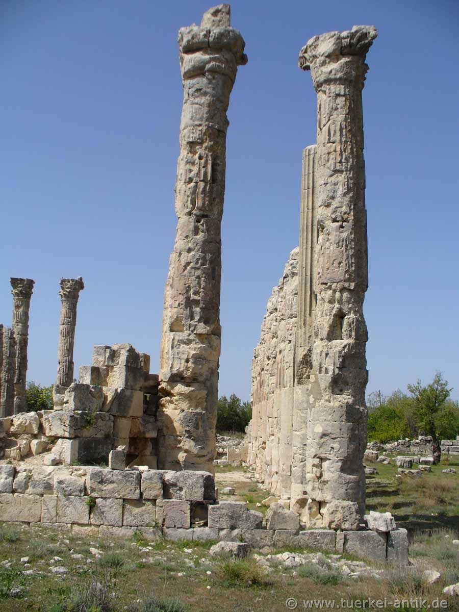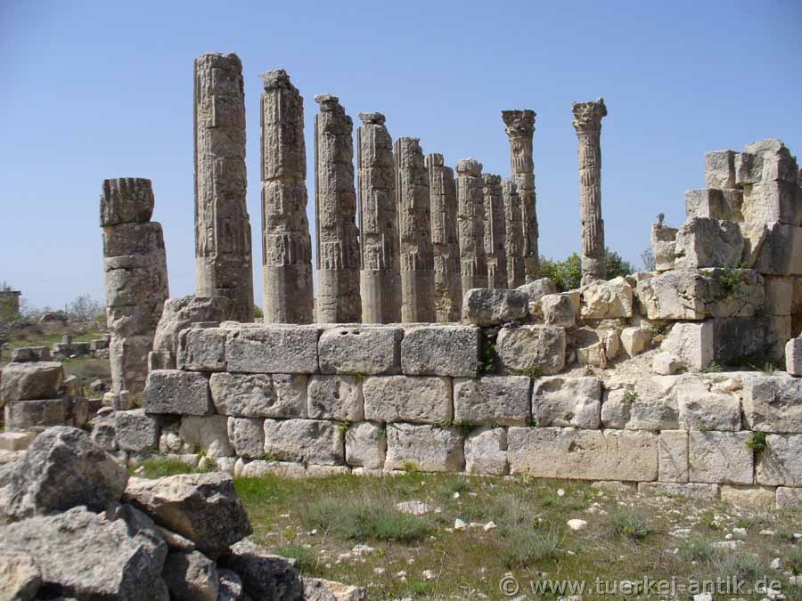 hoch und hatten an der Basis einen Durchmesser von 1,55 m. Im Rahmen der archäologischen Untersuchungen in den 1980er Jahren wurden die byzantinischen Mauerreste zwischen den Säulen entfernt und das Tempelareal freigeräumt. |