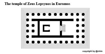The temple of Zeus Lepsynos is considered one of the six best preserved temples in Turkey, although its decorations are apparently not quite finished. Of the original 32 Corinthian columns, half are still upright and support parts of the building. Inscriptions remind of the founders and the stonemasons from the former Zeus sanctuary Labraunda have set their mark several times with the double axe (Labrys). |