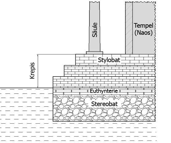 Stereobat, Euthynterie und Krepis bilden zusammen den Unterbau des