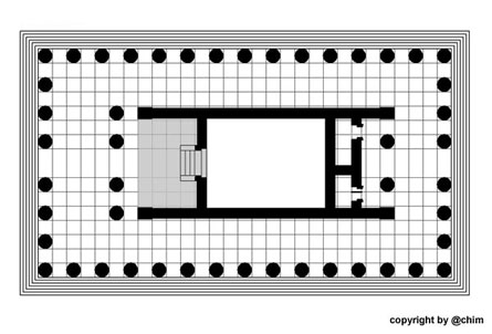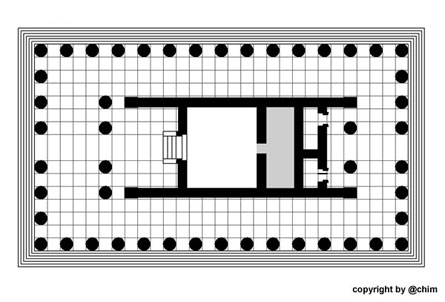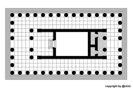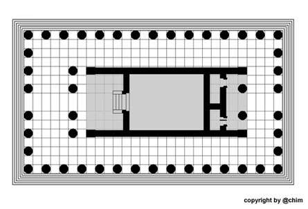 Tempels ist die Cella von einem durch einen Säulenkranz (Peristasis)