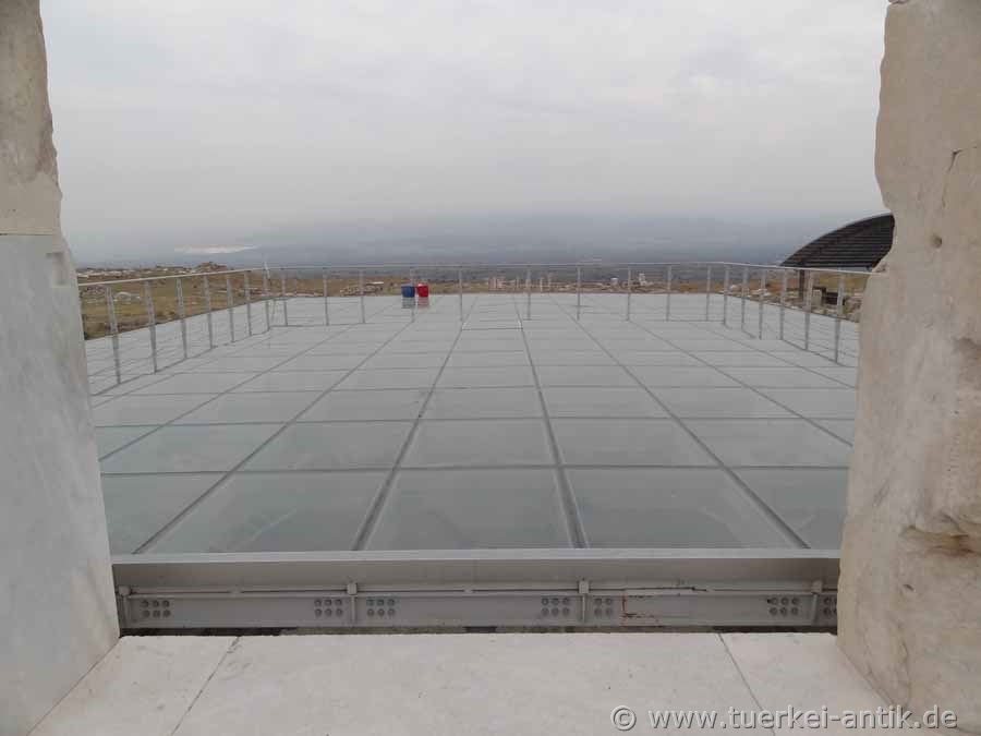 | Die gläserne Plattform über dem unterirdischen Gewölbe | ||||||||||||||||||||