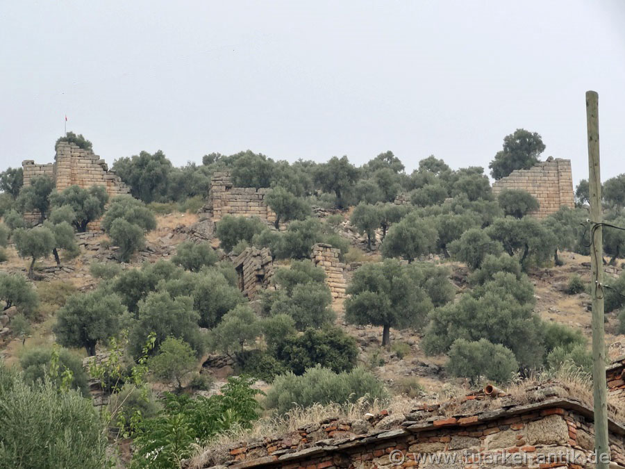 When Alexander the Great came to Caria on his campaign in 334 BC, she gave him Alinda and offered him the adoption. Thus he became the legal successor of the Carian rulers and appointed Ada as queen of Caria after the conquest of Halicarnassus. The most striking structure is the 90 metre long, completely preserved substructure of the former market building below the Agora. The divided basement rooms are accessible from the valley side at ground level, the ground floor from the Agora. Supports in the outer wall and several pillars occupy a former upper floor. |