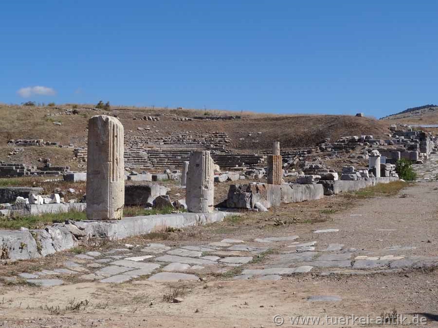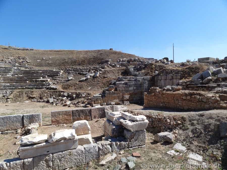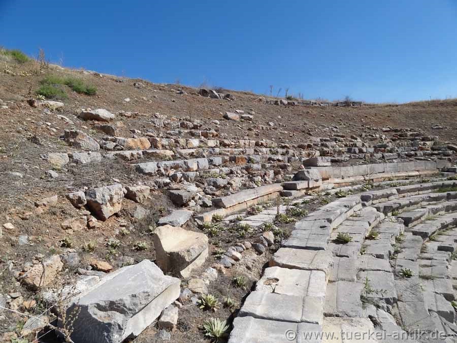The Roman theatre was only opened between 2001 and 2006. It probably dates from the early 1st century B.C. Later alterations and extensions were carried out by Marcus Aurelius Diogenes in the years 286 - 311 A.D. The cavea is built on a natural slope facing northwest. Considerable parts of the rows of seats are no longer present. The auditorium was divided by a