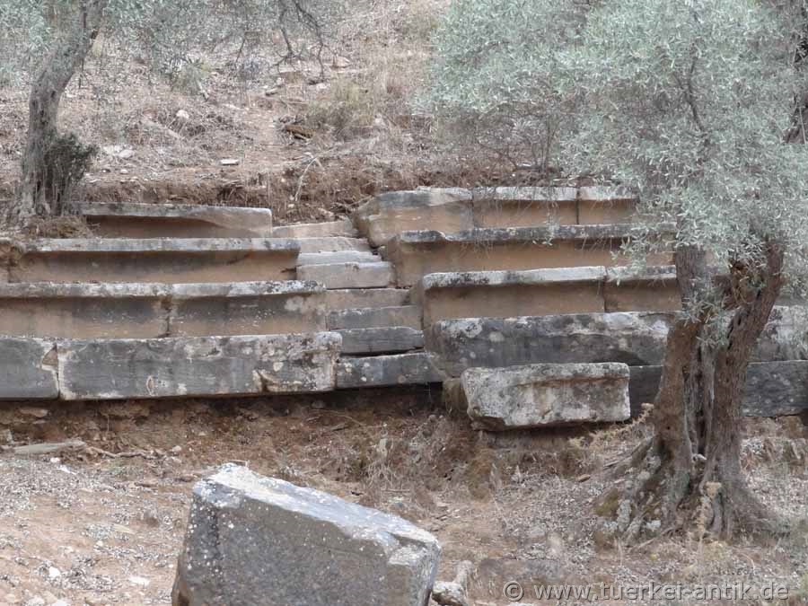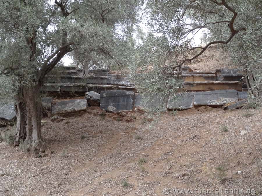 Euromos was the most important city in Caria after the neighbouring town of Mylasa (today Milas), about ten kilometres away. In the middle of the 5th century B.C. Euromos was a member of the Delhi-Atttian Sea Alliance. According to a local plaque, the name of the city in the 5th century BC was "Cyramos" or "Hyramos". |