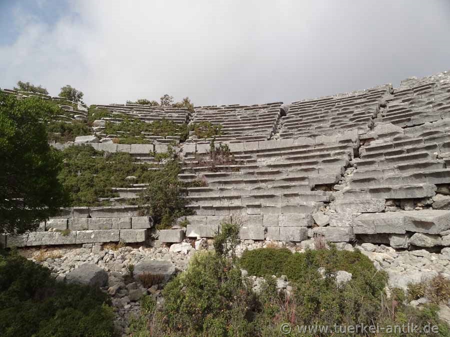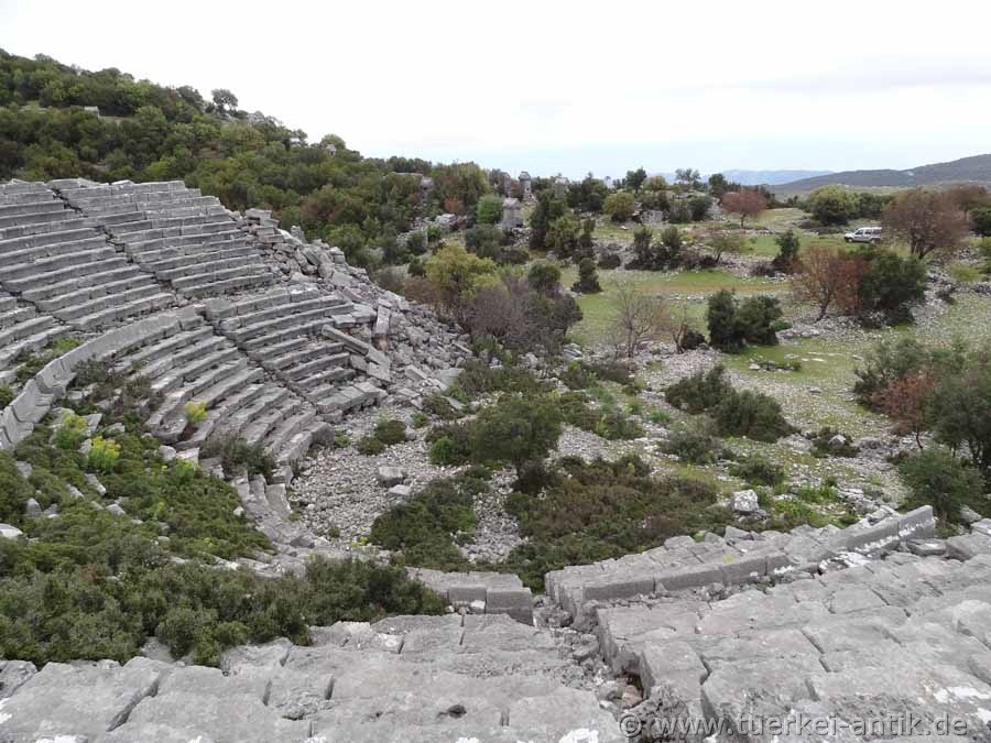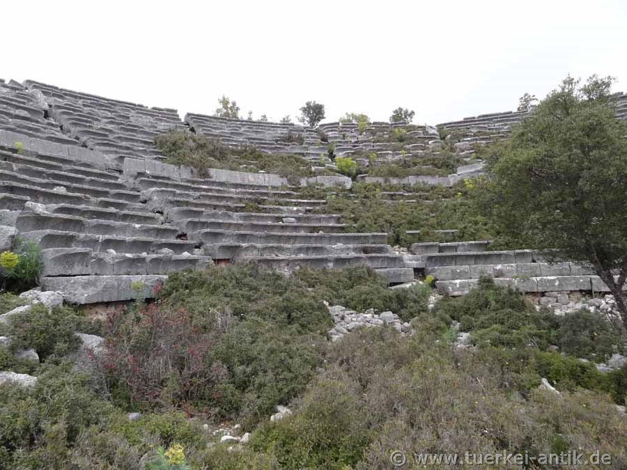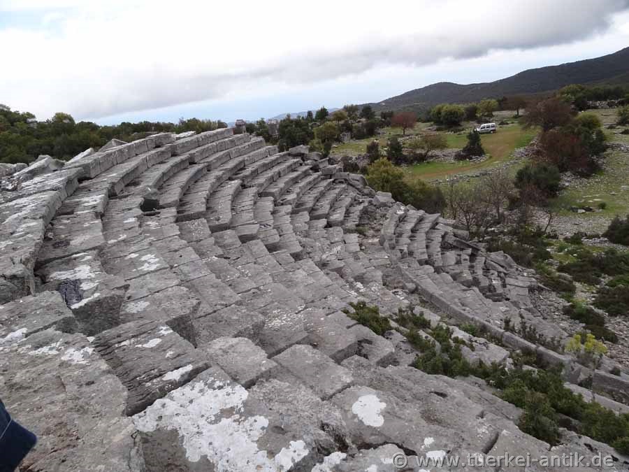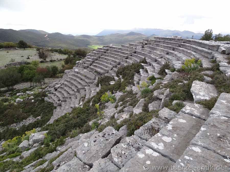 The Hellenistic theatre of the ancient city of Kyaneai was built on a natural slope and, like the entire city, has not yet been extensively explored and excavated. The theatre, dating from the 2nd century BC, is undoubtedly Kyaneai's best preserved building. |