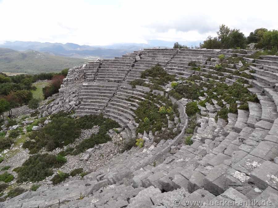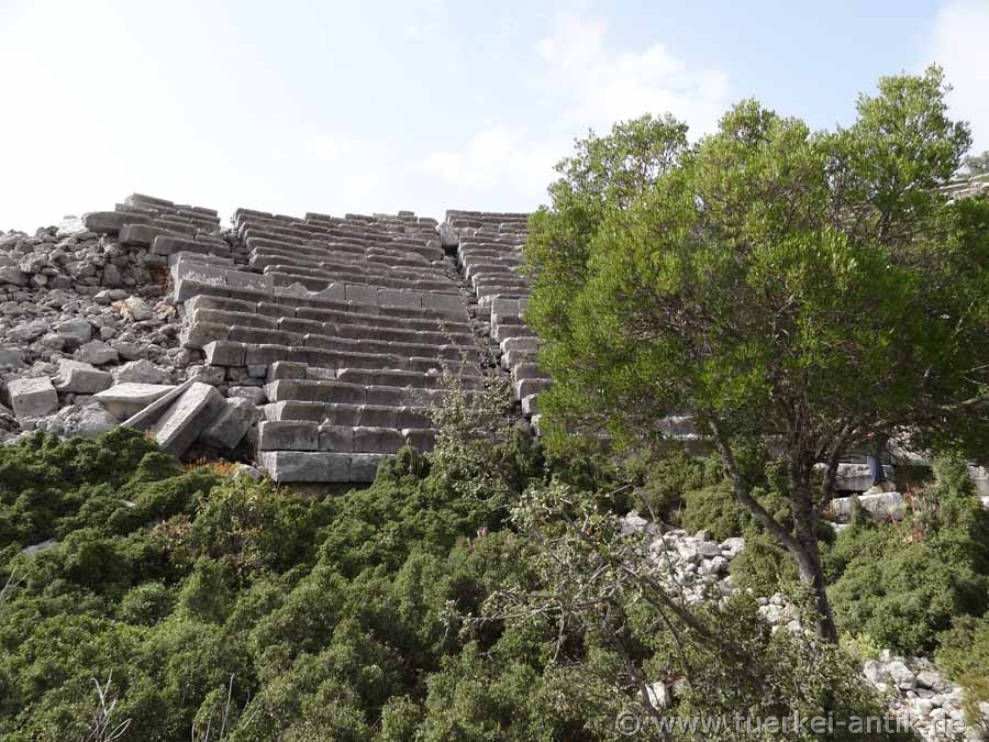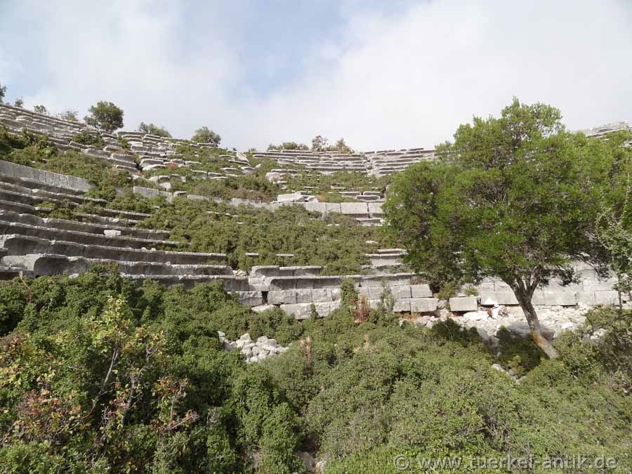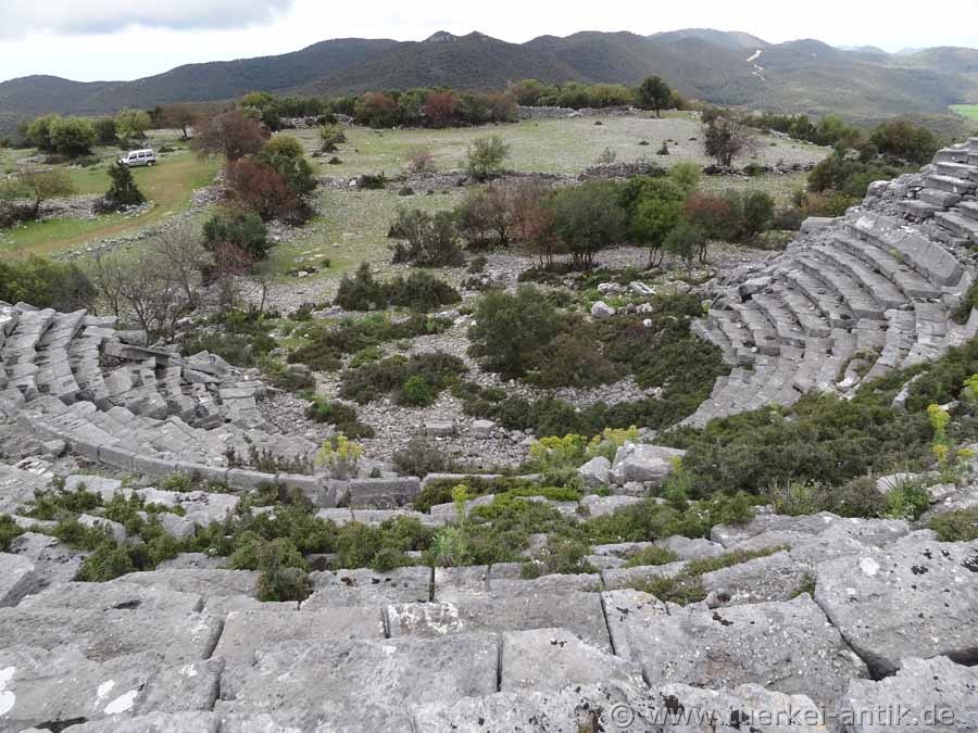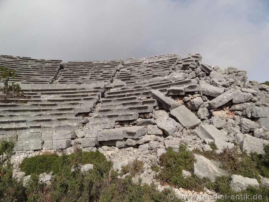 The Hellenistic theatre of the ancient city of Kyaneai was built on a natural slope and, like the entire city, has not yet been extensively explored and excavated. The theatre, dating from the 2nd century BC, is undoubtedly Kyaneai's best preserved building. |