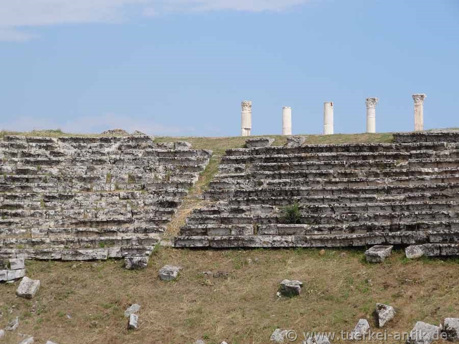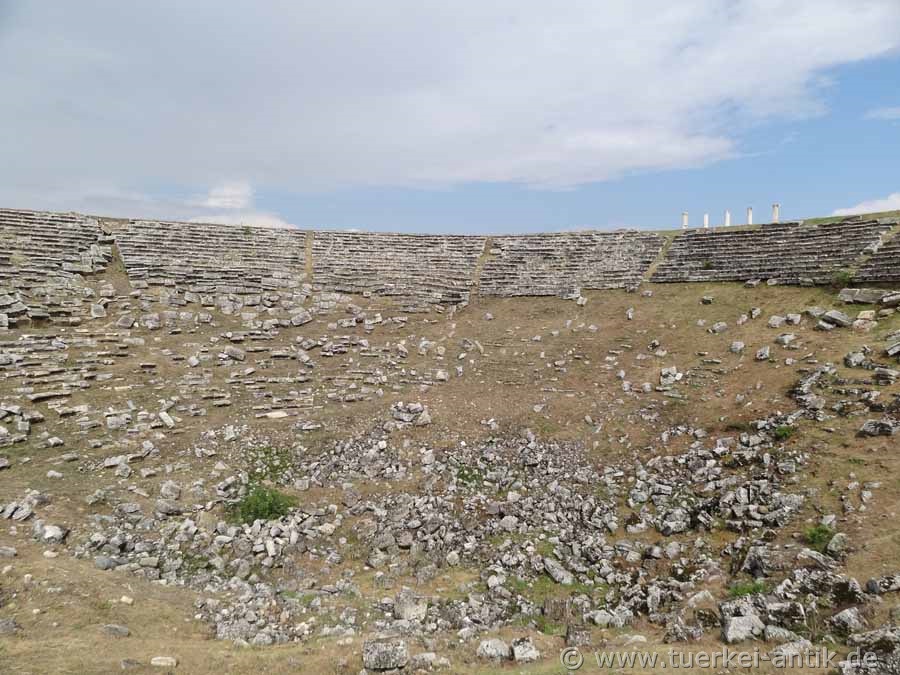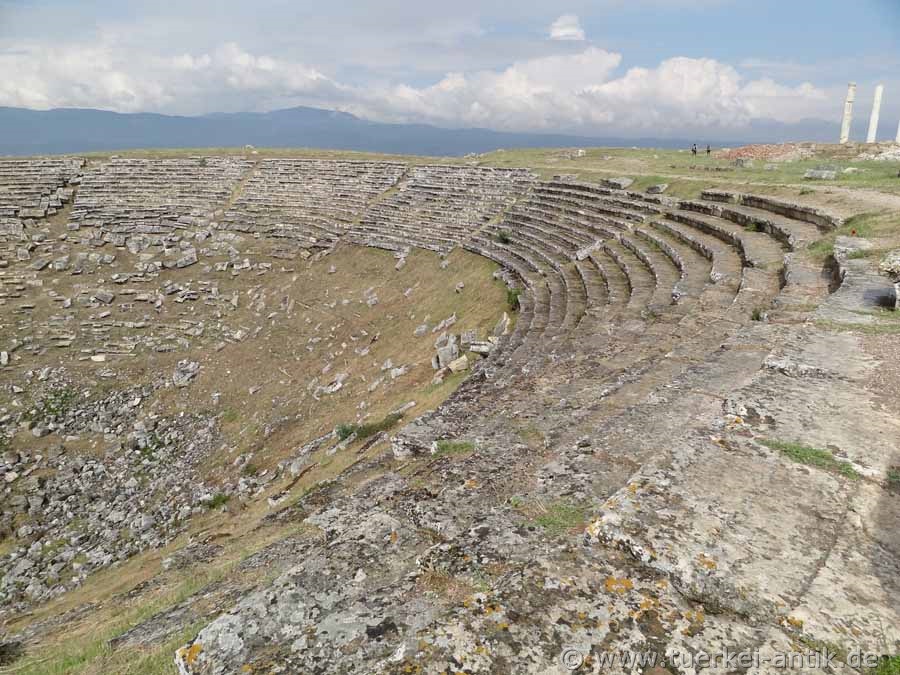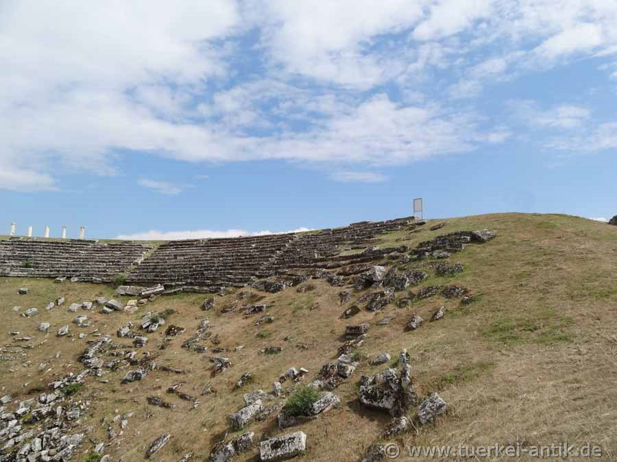 The smaller, originally Hellenistic theatre was built completely in the slope of the city hill. The stage house had a height of 6-7 meters. |