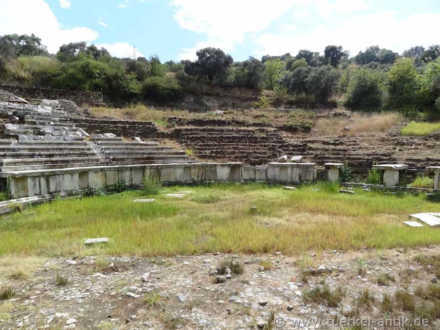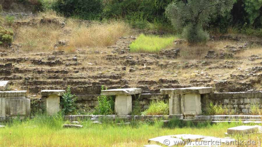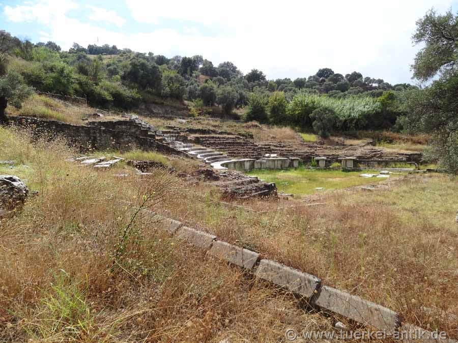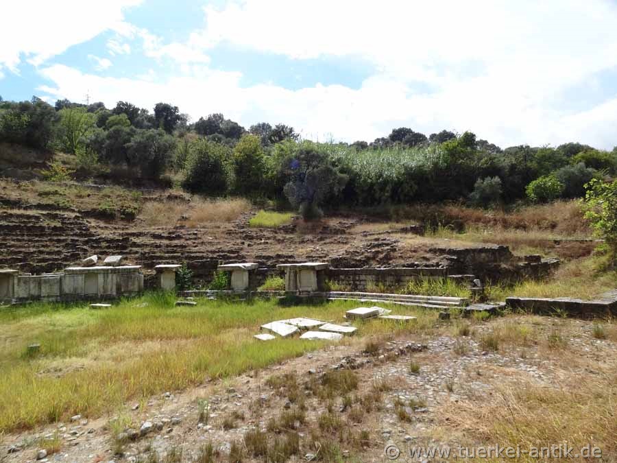 The late Hellenistic or early imperial theatre was never quite completed. It was only discovered in 1984. The remains are not very spectacular. There are no traces of the probably wooden stage house. The entrance of the