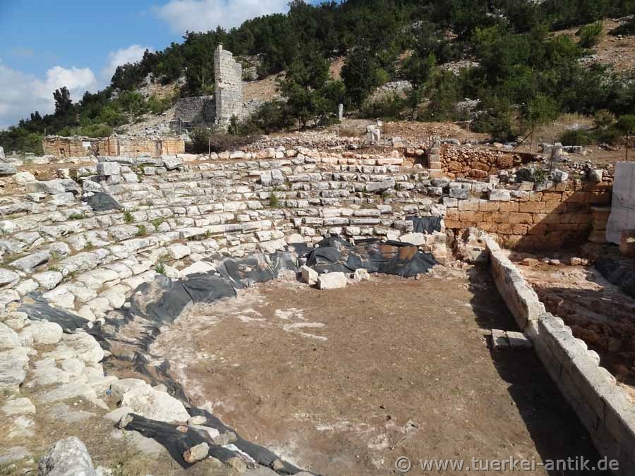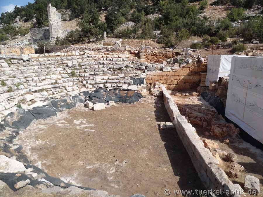 There are hardly any traditions about the Roman theatre of Olba. In autumn 2017 extensive excavations and reconstructions were carried out at the theatre. The photos show the status at the end of September 2017. |