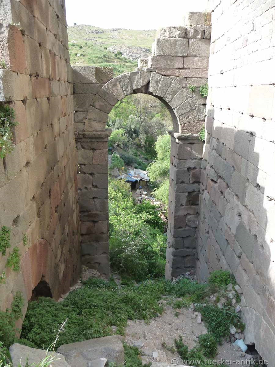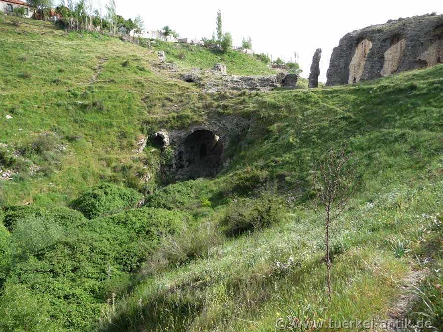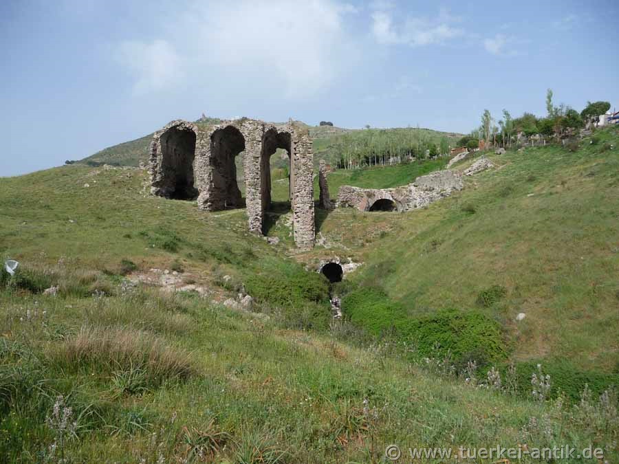When around 1250 the later emperor Theodoros II visited Laskaris Pergamon, he was shown the house of Galen, but he saw the amphitheatres of the city destroyed, and apart from the walls, to which he devoted some attention, only the vaults of the river Selinus were worth mentioning to him. |