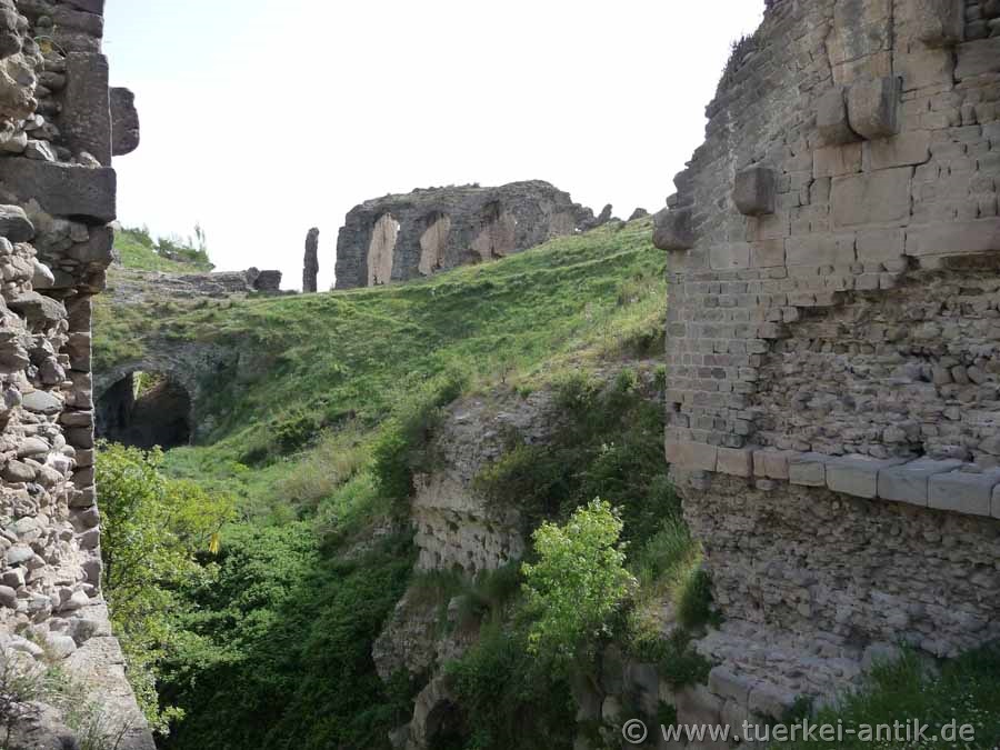 In Byzantine times, a retreat of the settlement to the castle hill can be observed, which was protected by a 6-metre thick wall made of spolia.