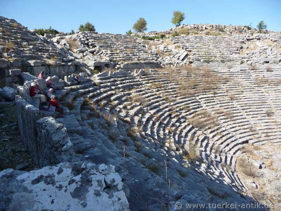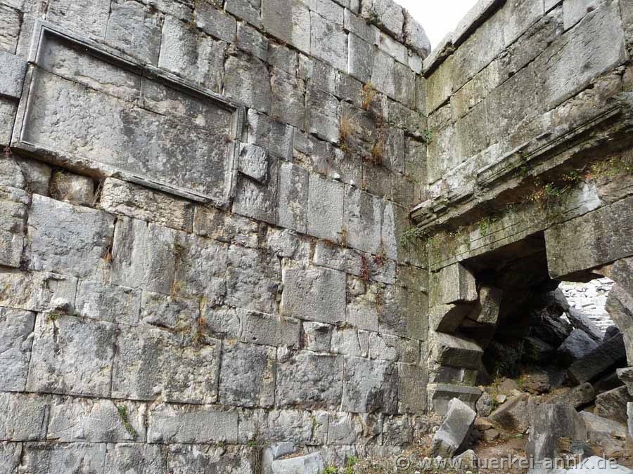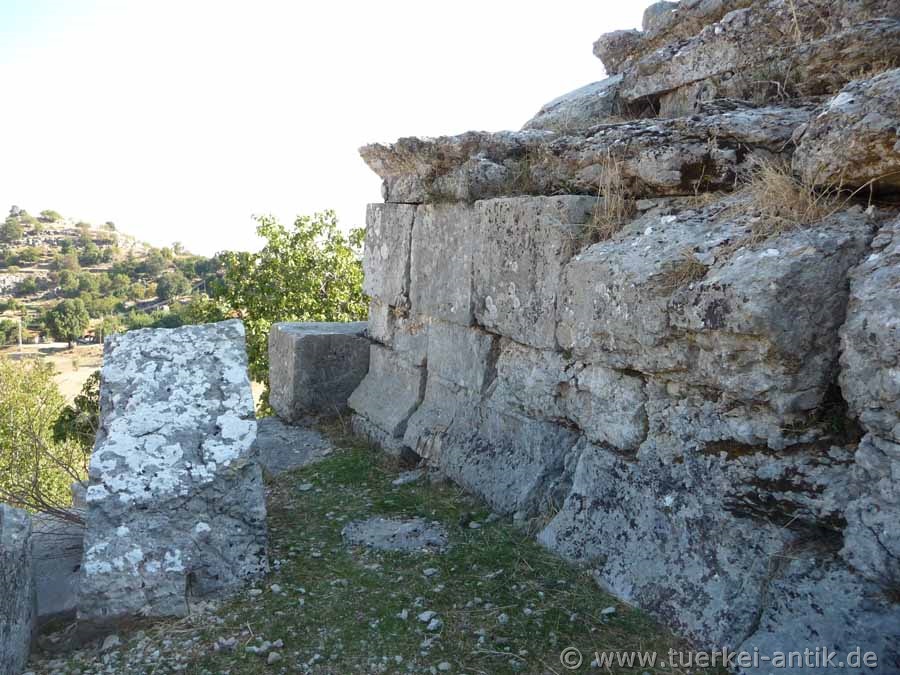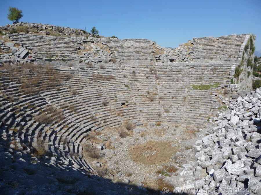According to tradition, Selge was founded after the war for Troy by the seer Kalchas and settled by Greeks from Sparta. On coins the place is verifiable since the 5th century BC. Economic basis were the cultivation of wine and olives on the surrounding fertile plateau. Politically there were good relations to Aspendos, otherwise the city was warlike against its neighbours. When Alexander the Great travelled through Asia Minor, the city allied itself with him to besiege the nearby town of Termessos, but without success. In 25 B.C. Selge loses his independence and is incorporated into the Roman province of Galatia. According to Strabo, the city had about 20,000 inhabitants at that time. Selge reached its greatest bloom at the time of the Roman Empire. 339 it comes to an unsuccessful siege by the Goths. In Byzantine times Selge was a bishop's seat. The town was later abandoned in the Seljuk period. |