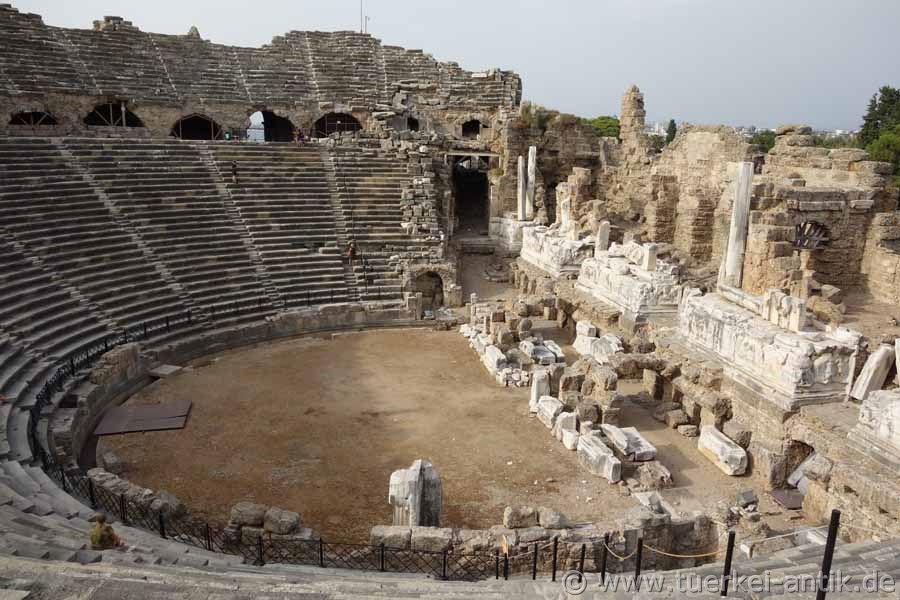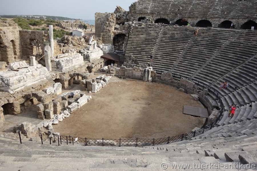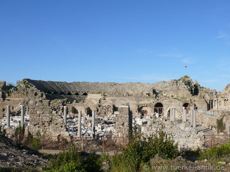 In the middle of the 2nd century A.D., the (Roman) theatre of Side was restored to its present condition. About a century later the