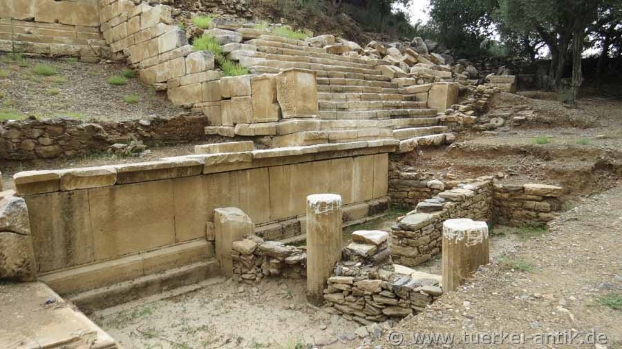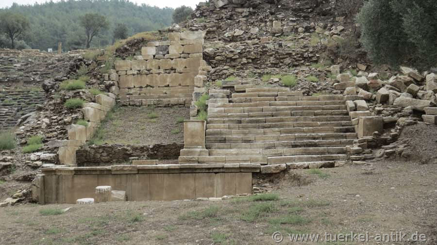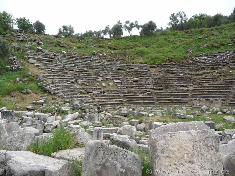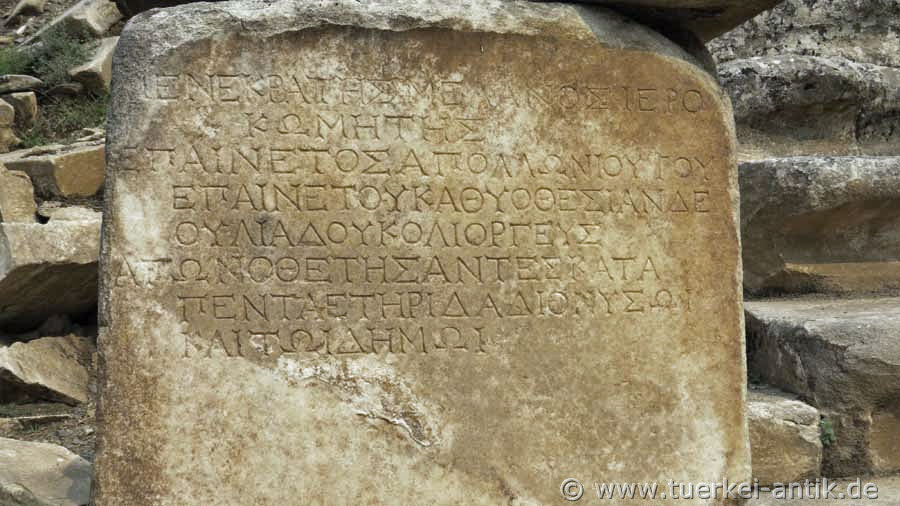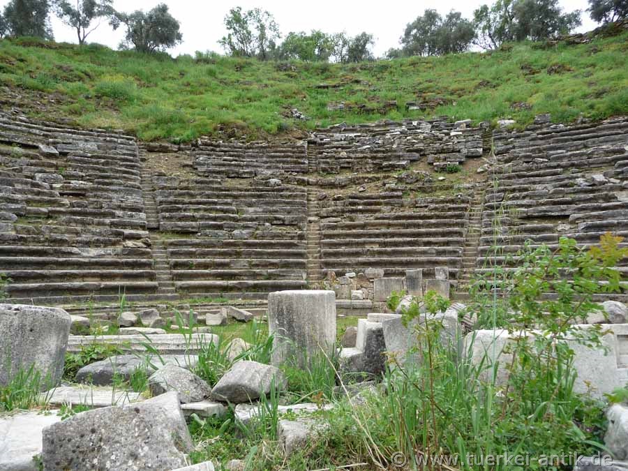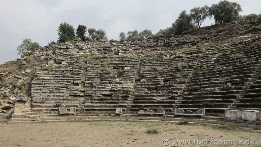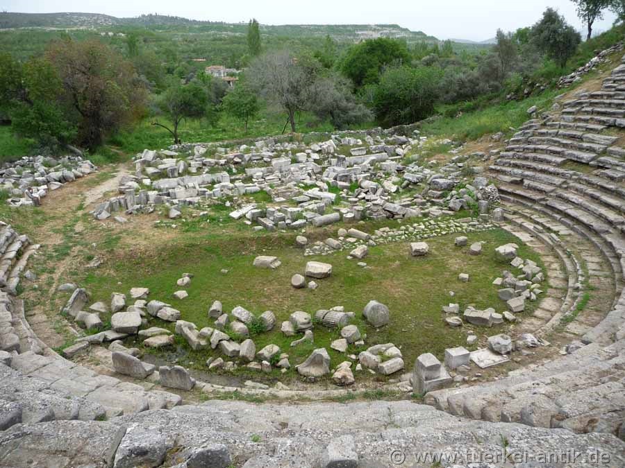 Stratonikeia was founded at the beginning of the 3rd century BC by the Seleucid king Antiochos I and named after his wife Stratonike. Archaeological finds such as bronze grave goods, pottery and two chamber tombs near the town indicate that the town probably originated from a Carian predecessor settlement. The town's territory also included neighbouring villages. In addition to the towns of Tendeba, Astragon and Pedasa, mentioned by Titus Livius and Strabon, it also included Lagina with its sanctuary of Hecate and Panamara with a sanctuary of Zeus. The possession of these also supra-regionally important sanctuaries could also be used as a power factor in political-military conflicts. Since a tribute by Sulla (Roman dictator) around 88 B.C., the villages Themessos and Keramos also belonged to the catchment area, so that Stratonikeia extended as far as the south coast. The city was thus a member of the Chrysaorian League of the Carians via its suburbs, although its core area was not in its catchment area. Around 240 BC the Seleucids left Stratonikeia to the rule of Rhodes. Later the city was conquered by the Macedonians. In 197 B.C. the Rhodians tried to reconquer Stratonikeia, but this failed. After the defeat of the Macedonians in the Battle of Kynoskephalai in 197 BC, the city fell to the Seleucid king Antiochos III, who in turn handed it over to the Rhodians. In 167 B.C. the Rhodians had to surrender Stratonikeia again; the Romans declared it a free city. In 133 B.C. Stratonikeia briefly became the headquarters of the rebel Aristonikos, who finally had to relinquish the city. In the First Mithridian War the city was conquered, occupied and fined by Mithridates VI in 88 BC. After the reconquest by the Romans, Sulla honoured the inhabitants for their loyalty; in 81 the status as a free city was confirmed. In 40 BC the Parthians besieged the city in vain with their commander Quintus Labienus. Stratonikeia retained its autonomy even under Roman rule in the province of Asia. In late antiquity the city became a bishop's seat, which is the origin of the titular bishopric Stratonicea in Caria. |