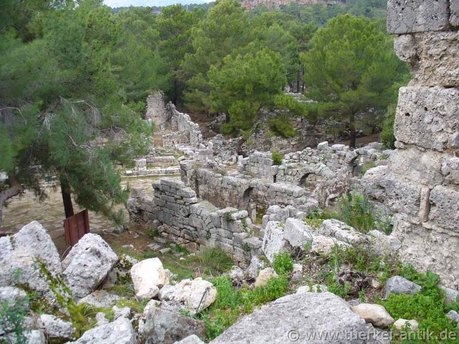 Die Theater-Therme in Phaselis, auch "Kleines Bad" genannt, befindet sich auf der Ostseite des zentralen Marktplatzes, unterhalb des Theaters. Anhand der Ausführung des Hypocaustsystems lässt sich seine Entstehungszeit in die Zeit um das 1. Jh. n. Chr. datieren. Es wird angenommen, dass es sich um ein Privat-Bad handelte, also der breiten Öffentlichkeit nicht zur Verfügung stand. Das große, öffentliche Bad mit direktem Anschluß an den Aquädukt befand sich in ca. 50 Meter Entfernung auf der Westseite der Hauptstraße.