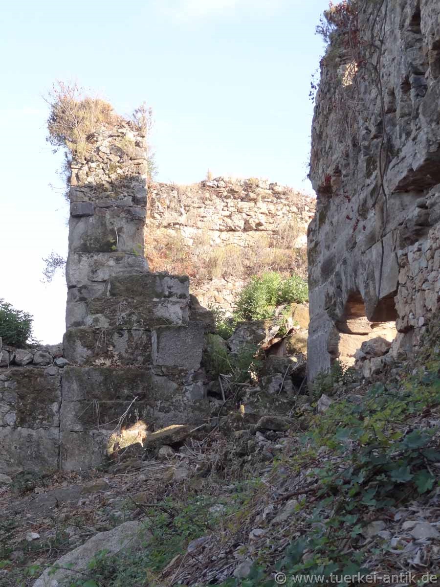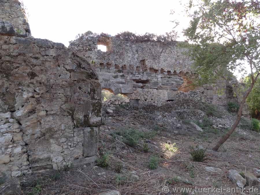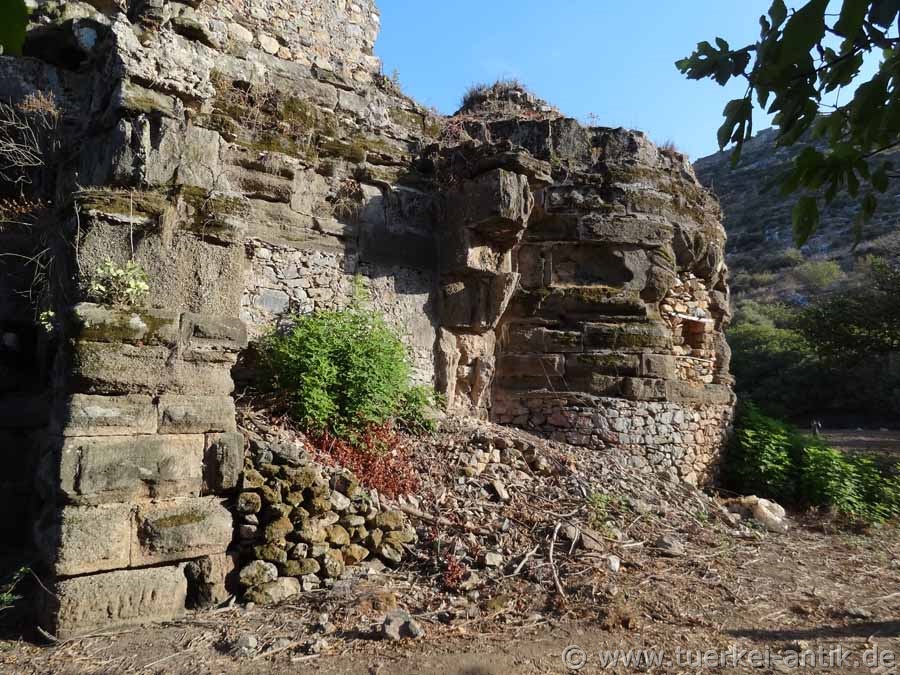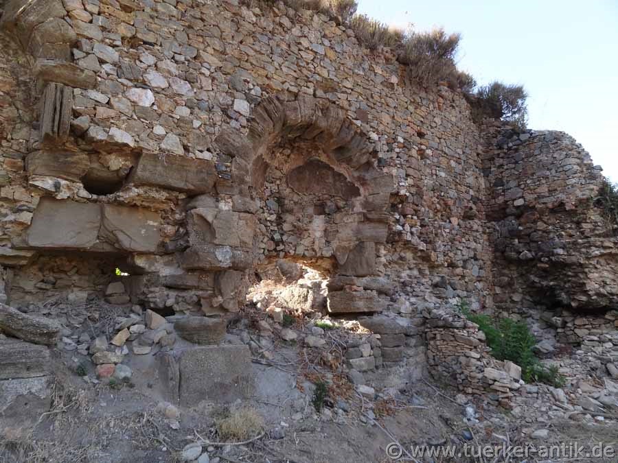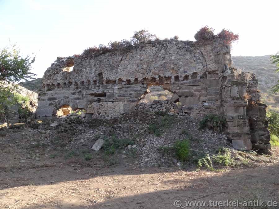 Aquädukt in die Stadt führte. Von diesem Aquädukt sind einige Teilstücke, teils kaum als ein solches zu erkennen, erhalten. Diese