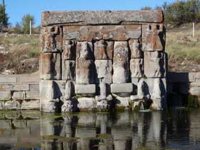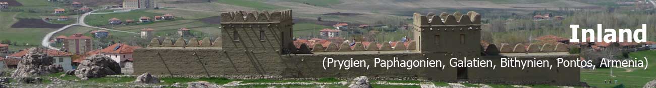 Osmanische Karawanserei im heutigen Ort Döğer in der Provinz Afyonkarahisar. | Hethitisches Quellheiligtum am Beyşehir-See in der Provinz Konya. | Portikusgrab in Phrygien beim heutigen Ort Çukurca in der Provinz Afyonkarahisar. | ||||