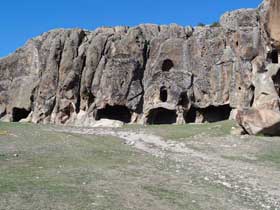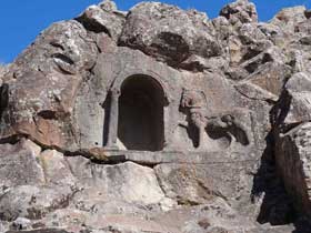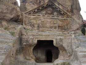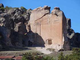 | Phrygische Felskammergräber nördlich von Afyonkarahisar in der gleichnamigen Provinz. |