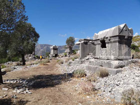 Antike Stadt beim heutigen Ort Yavu in der Provinz Antalya. | Antikes Heiligtum in der Nähe der antiken Stadt Xanthos in der Provinz Muğla. | Antike Stadt beim heutigen Ort Turunçova in der Provinz Antalya. | ||||