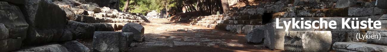 | Antike Stadt beim heutigen Ort Ören in der Provinz Muğla. | Antike Stadt beim heutigen Ort Arif in der Provinz Antalya. | Antikes Flammenheiligtum beim heutigen Ort Çıralı in der Provinz Antalya. | Antike Stadt beim heutigen Ort Hacımusalar in der Provinz Antalya. | ||||